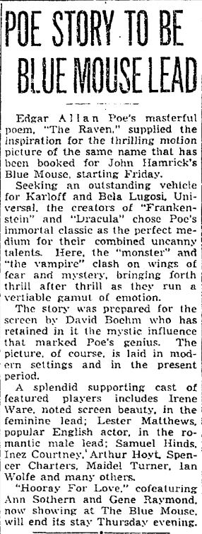 This is a collection of print media from the initial runs of 1935's "The Raven" in the Pacific Northwest.