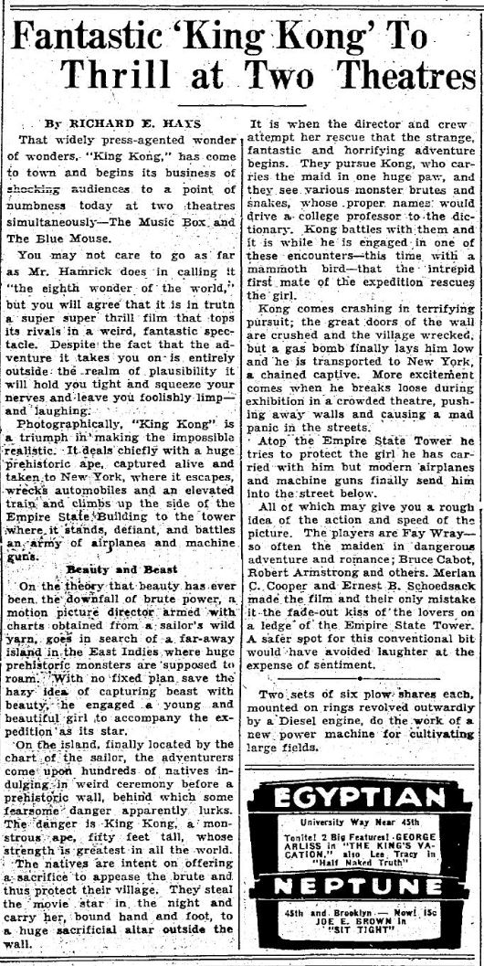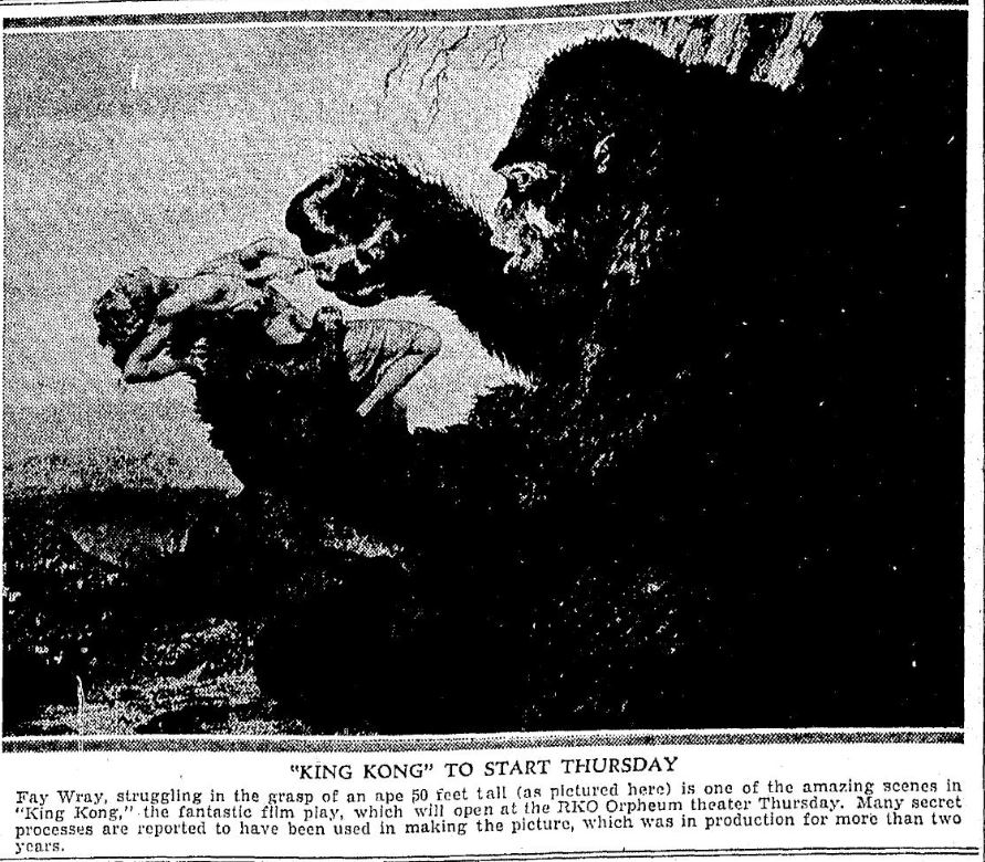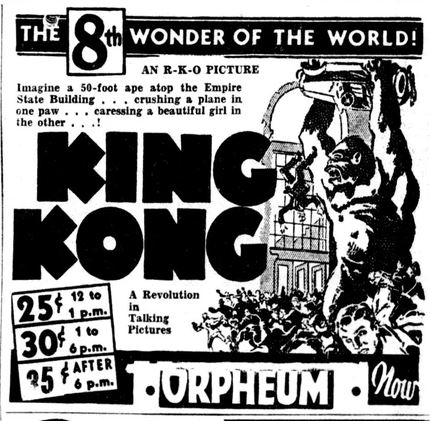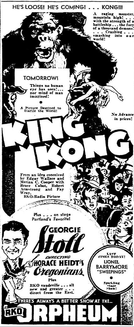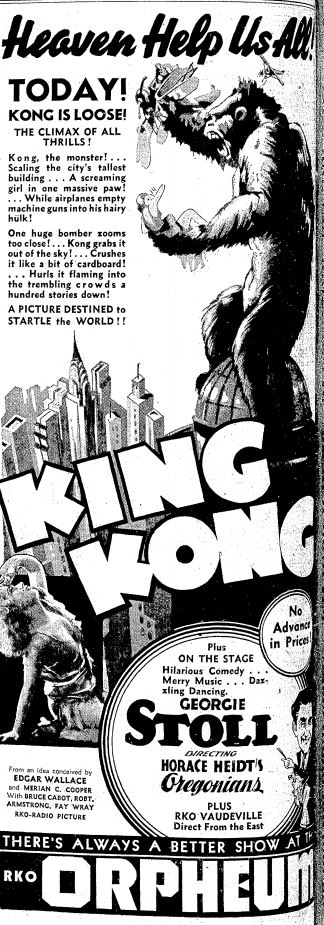 A collection of print media from earl;y runs of "King Kong (1933)" in the Pacific Northwest.