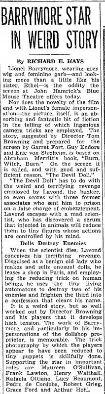 This is a collection of print media from the initial runs of 1936's "The Devil Doll" in the Pacific Northwest.