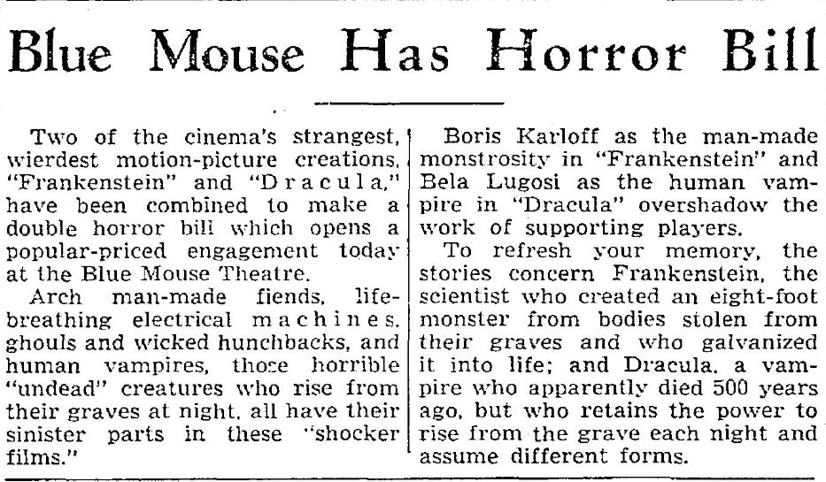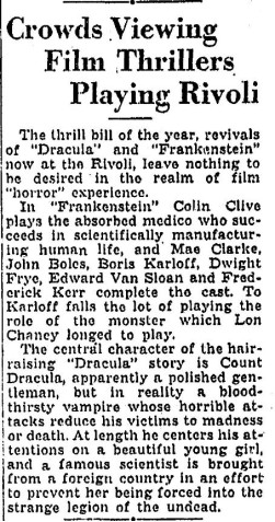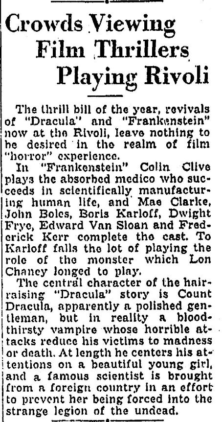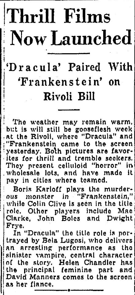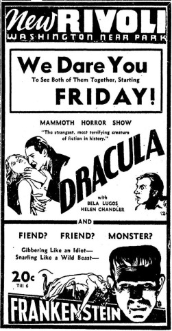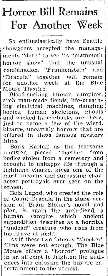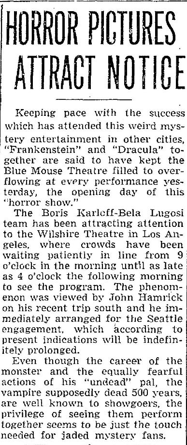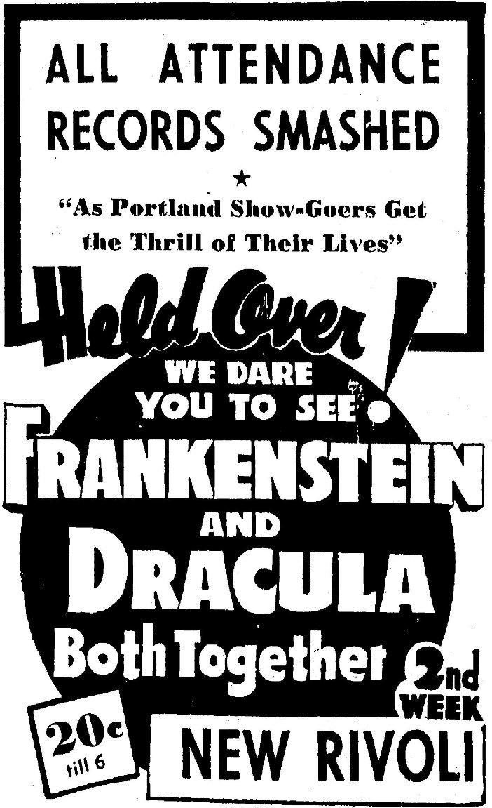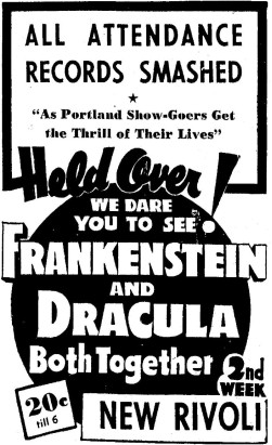 This is a large collection of print media from the original Seattle and Portland reissues of "Frankenstein" (1931) and "Dracula" (1931), as well as the later Seattle triple bill which Portland didn't get.