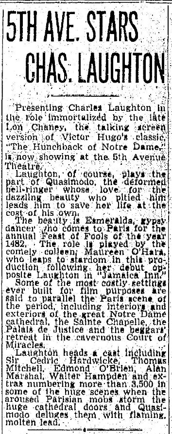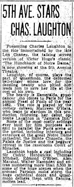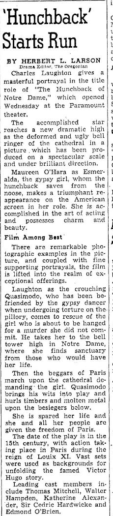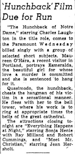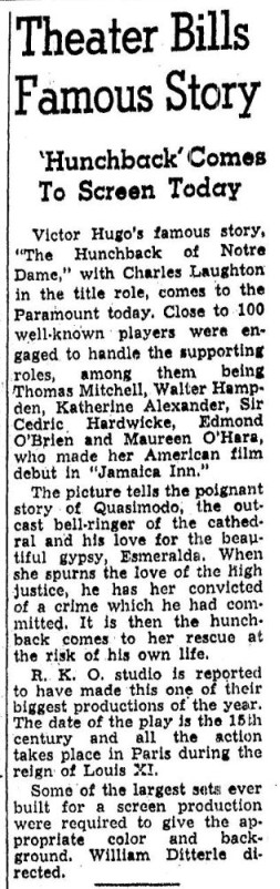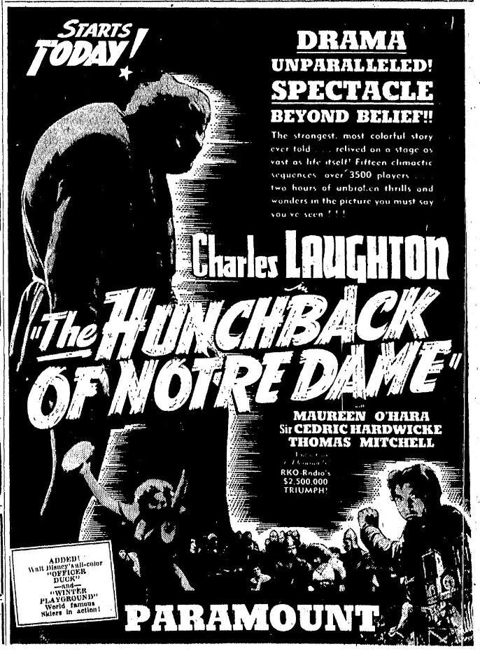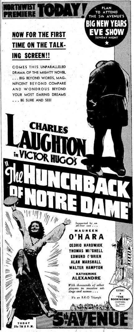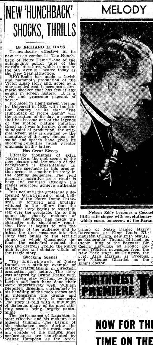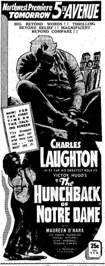 Compared with everything else short of "Son of Frankenstein," this was THE genre film of 1939. Here is a nice set of print media from the initial run of 1939's "The Hunchback of Notre Dame" in the Pacific Northwest.