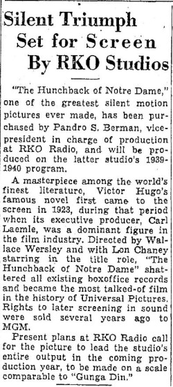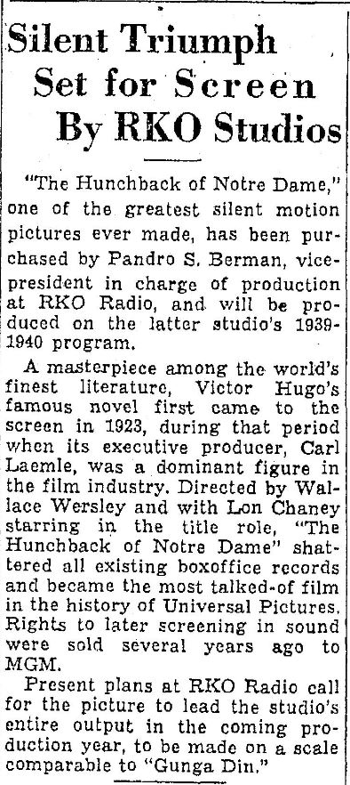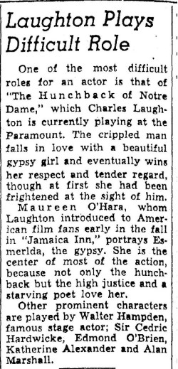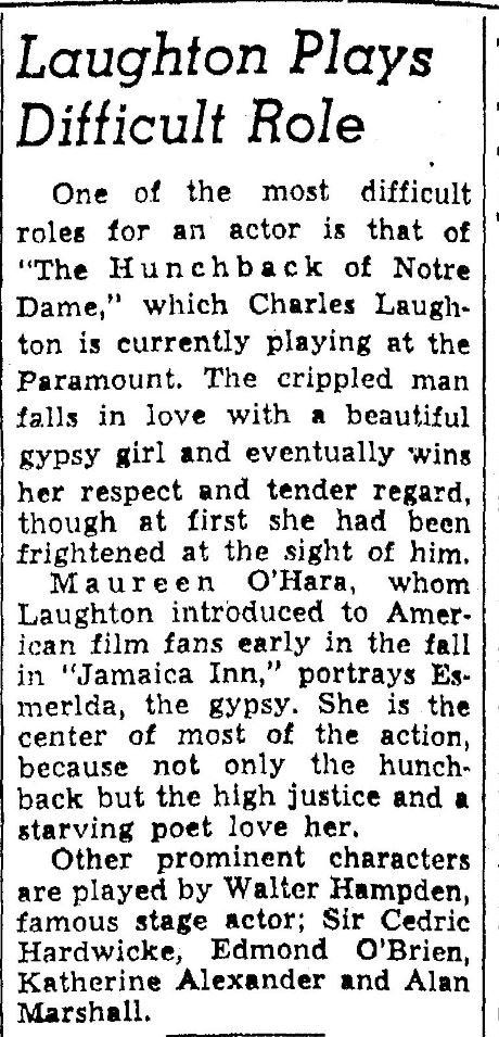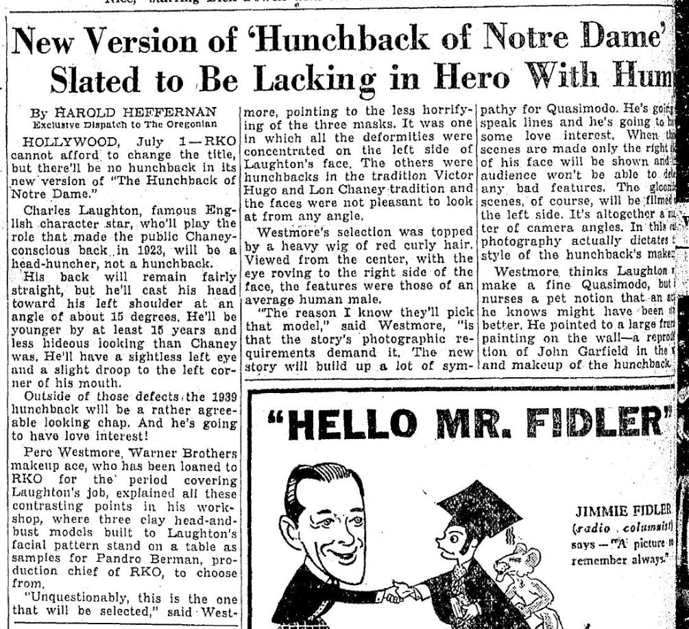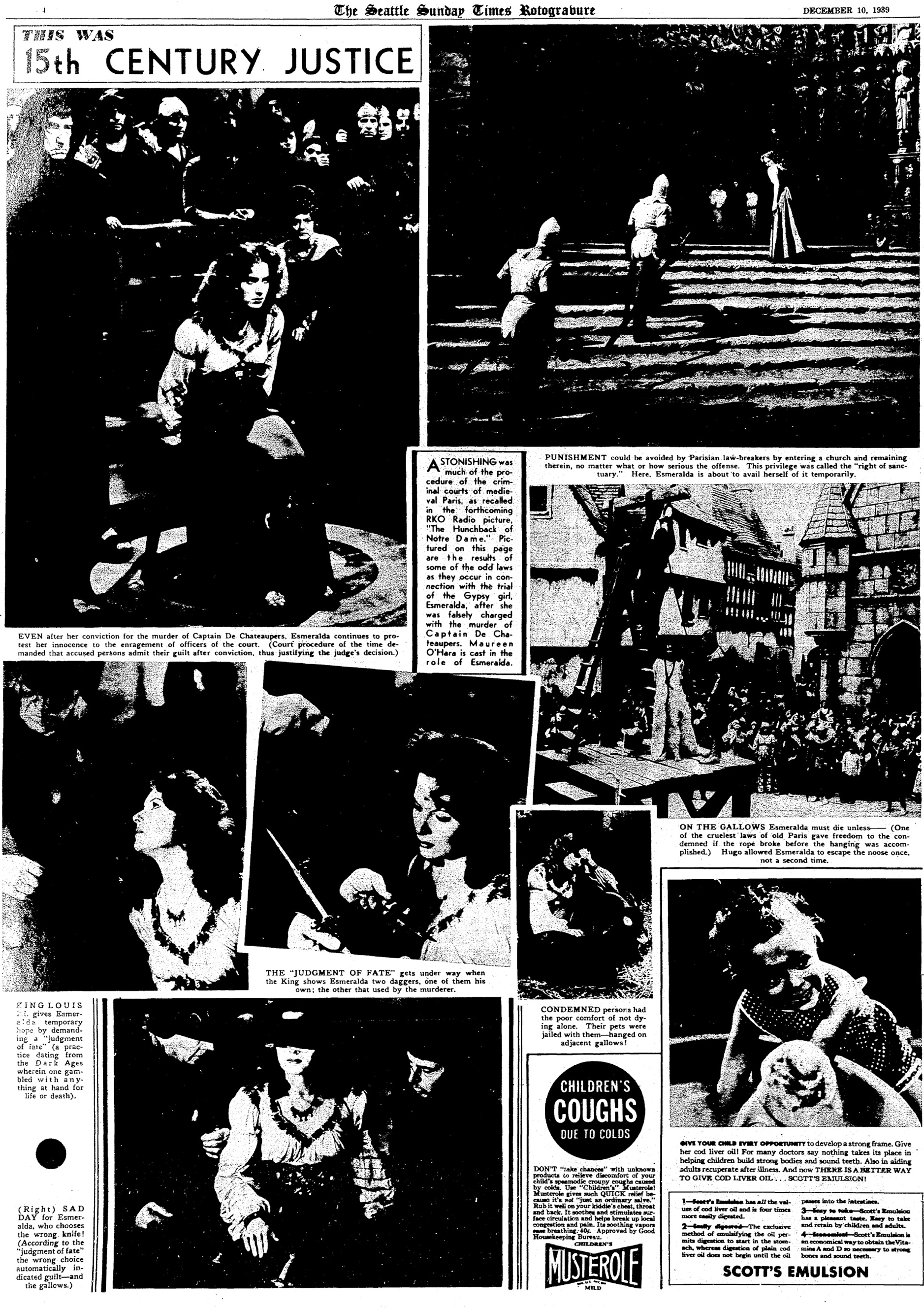 Compared with everything else short of "Son of Frankenstein," this was THE genre film of 1939. Here is a nice set of print media from the initial run of 1939's "The Hunchback of Notre Dame" in the Pacific Northwest.