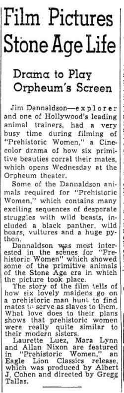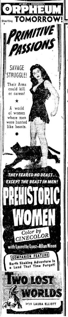 The following is a collection of print media from the initial runs of 1950's "Prehistoric Women" in the Pacific Northwest.