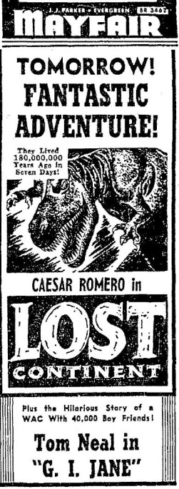 The following is a collection of print media from the initial runs of 1951's "Lost Continent" in the Pacific Northwest.