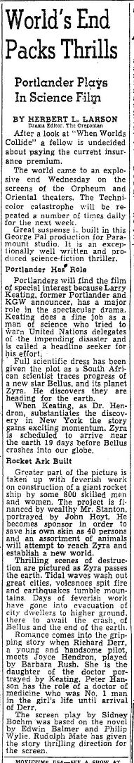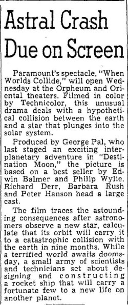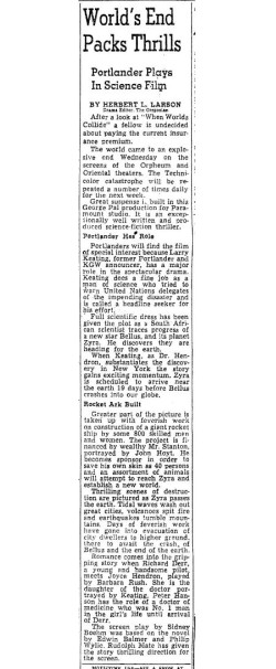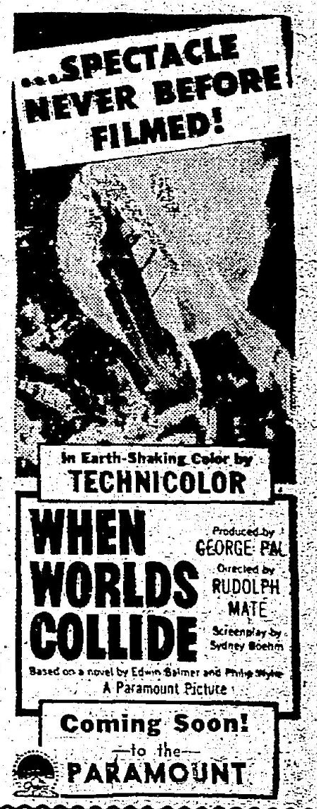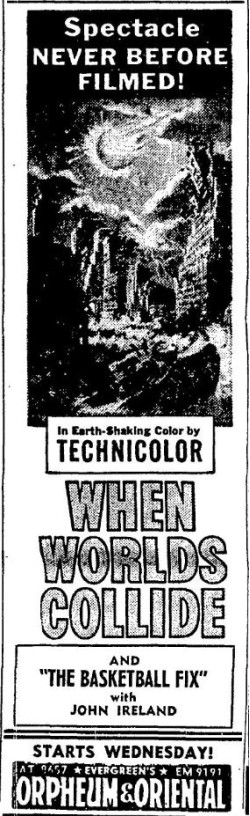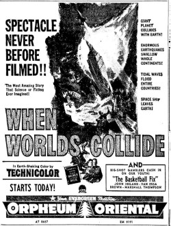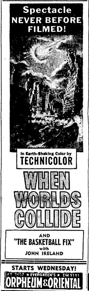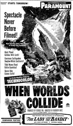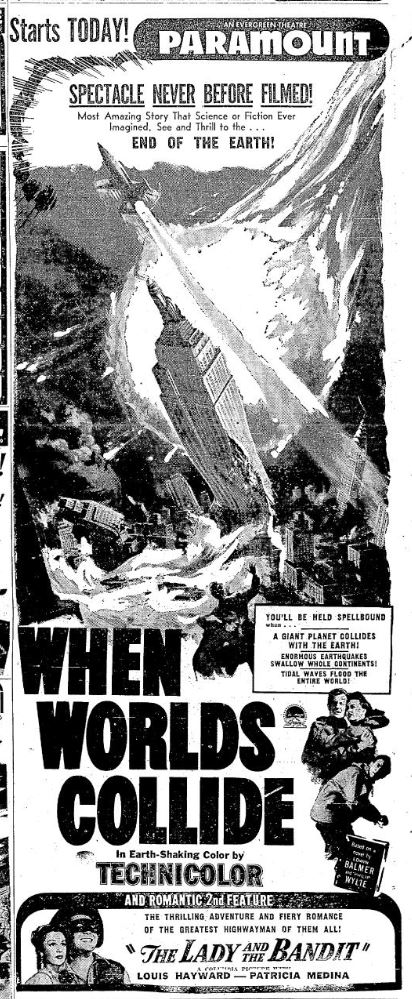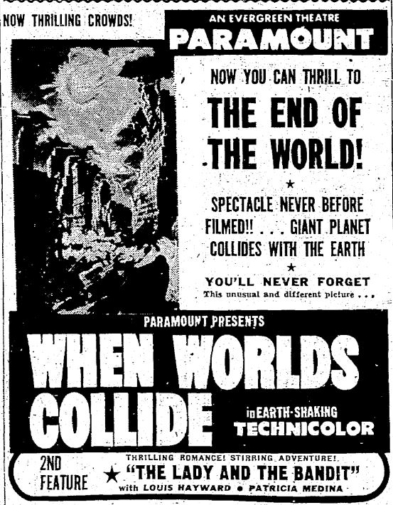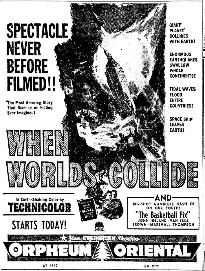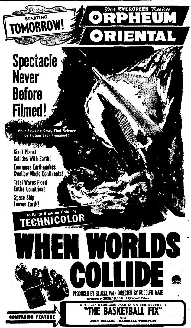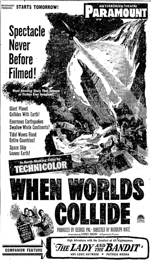 The following is a collection of print media from the initial runs of 1951's "When Worlds Collide" in the Pacific Northwest.