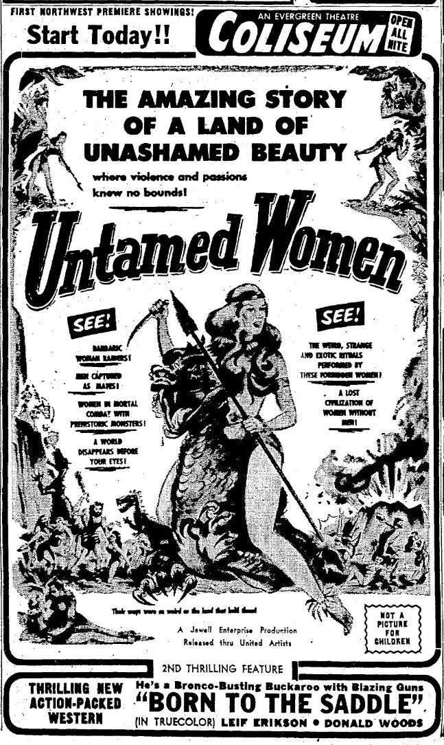 1952 was a sparse year for genre titles in the PNW with just a few more obscure exploitation films making the rounds. This is the second of two collections of media from other films that played the Pacific Northwest in 1952.