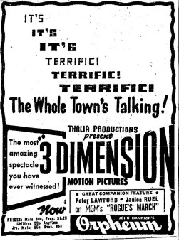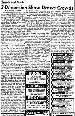 The following is a collection of print media from the initial runs of 1953's "3 Dimension Motion Pictures" in the Pacific Northwest.