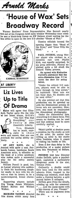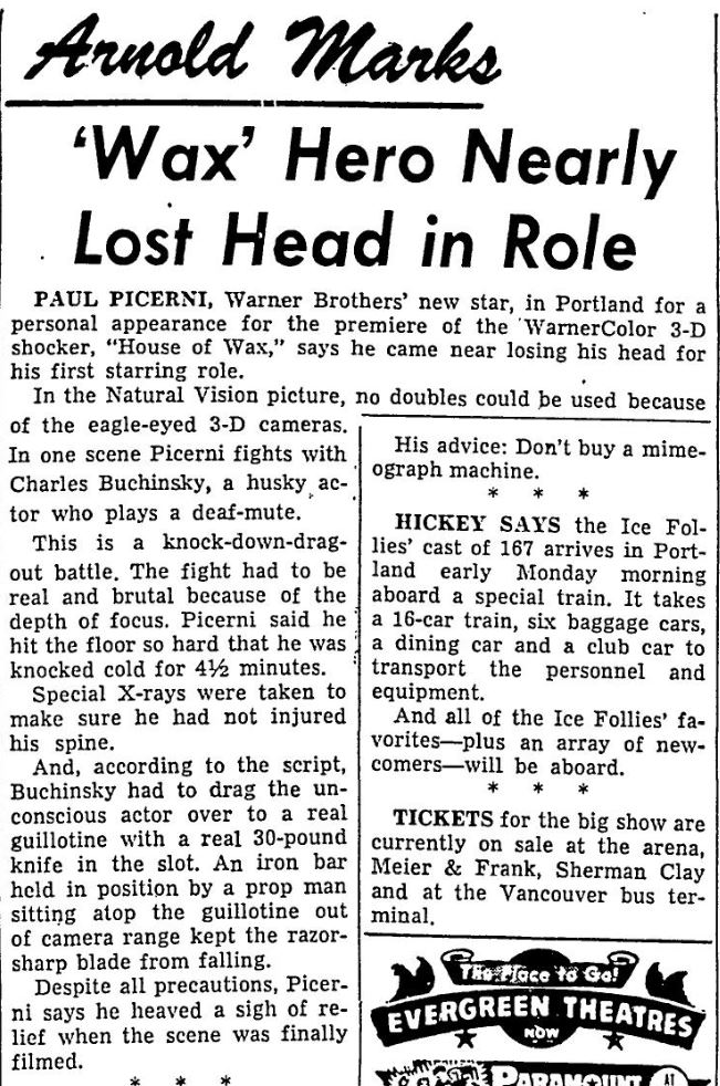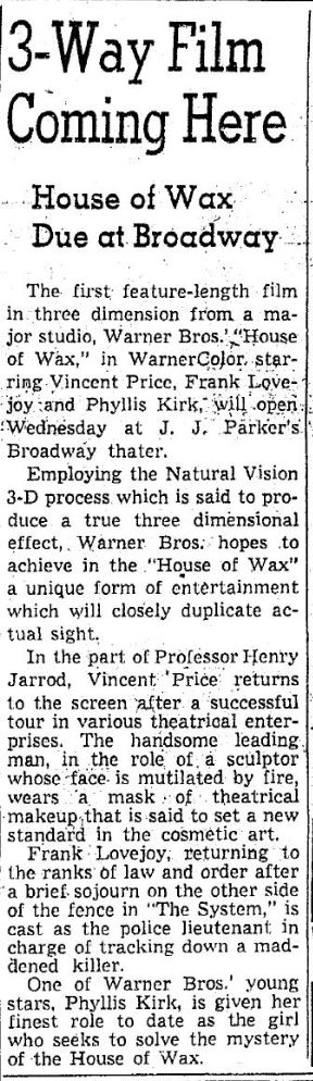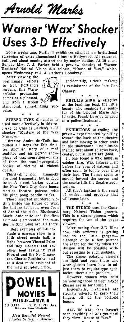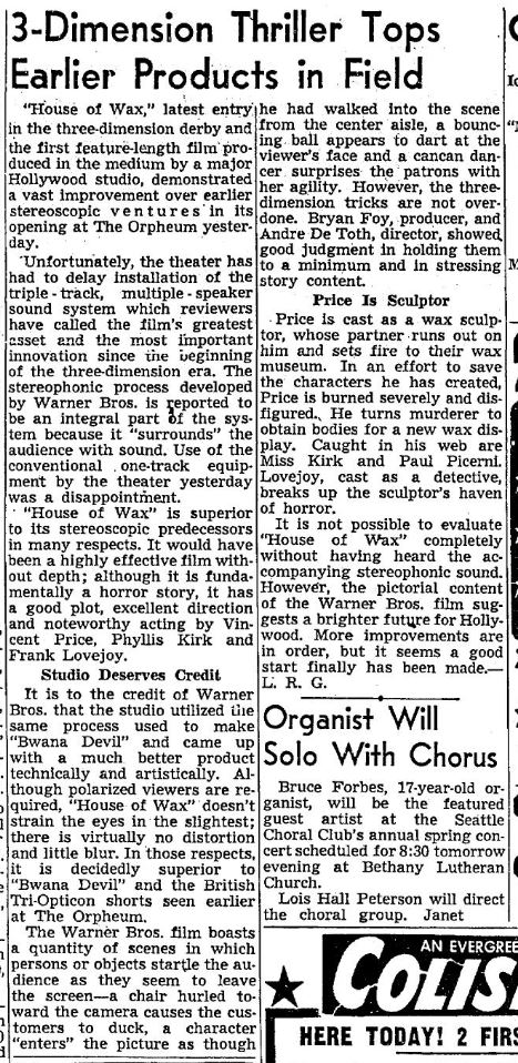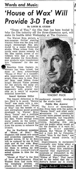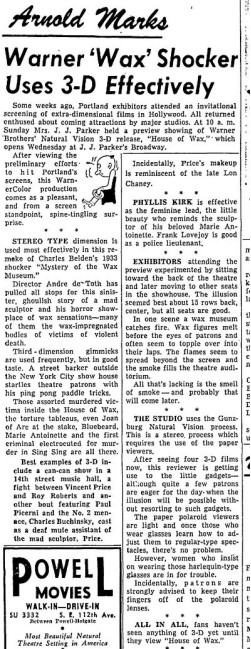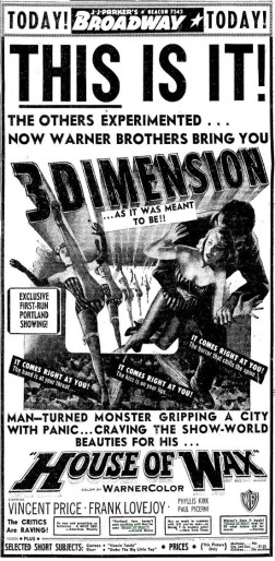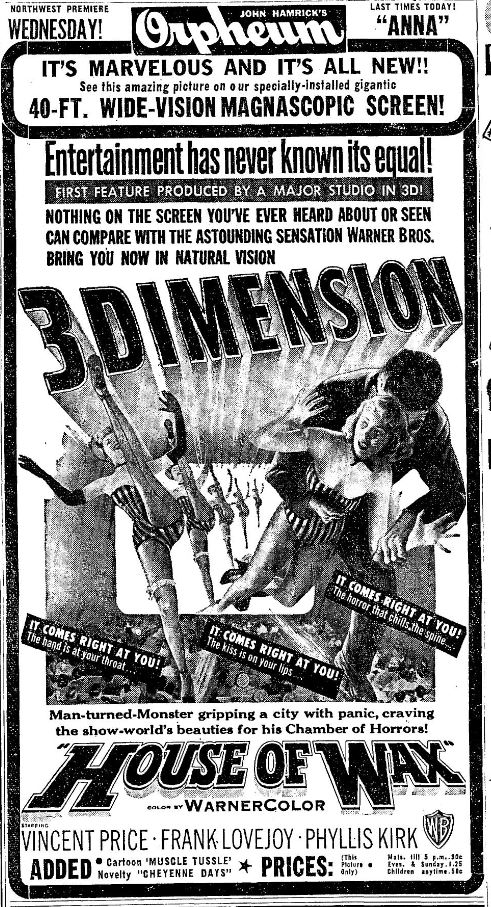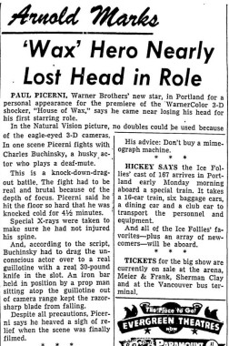The following is a collection of print media from the initial runs of 1953's "House of Wax" in the Pacific Northwest.