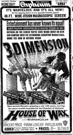 "House of Wax" wasn't the first 3D film but was the first color 3D film from a major studio.