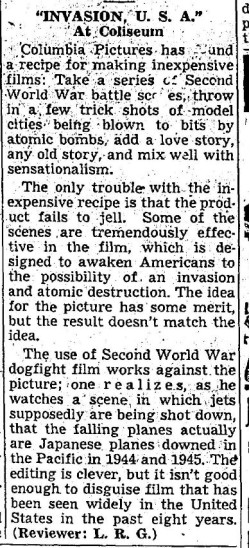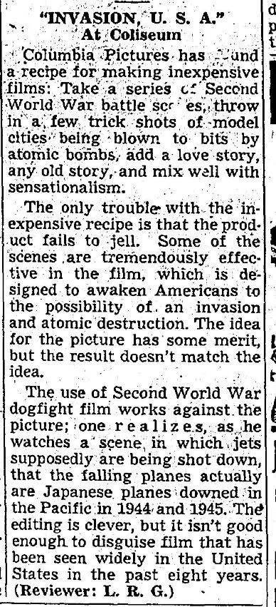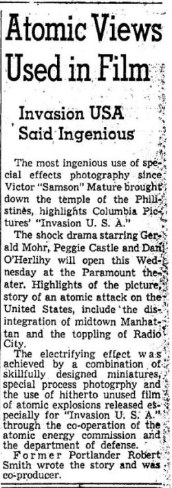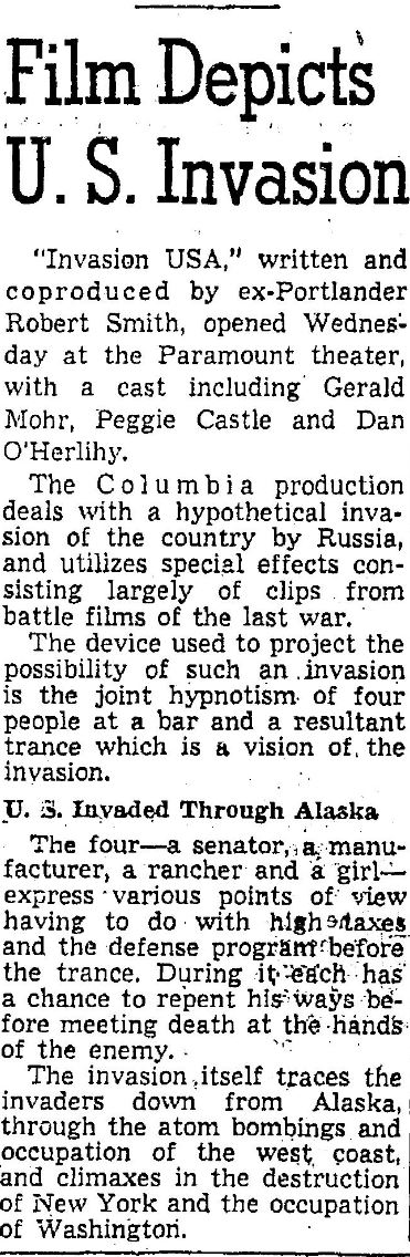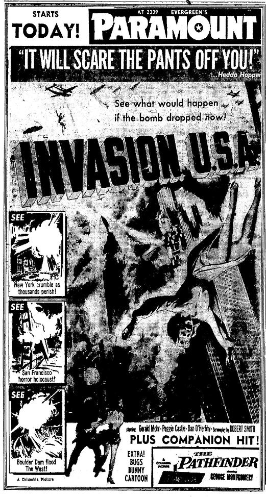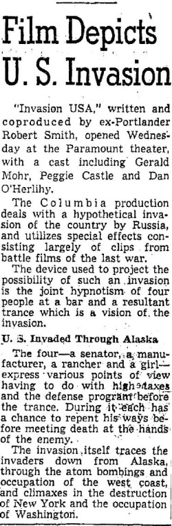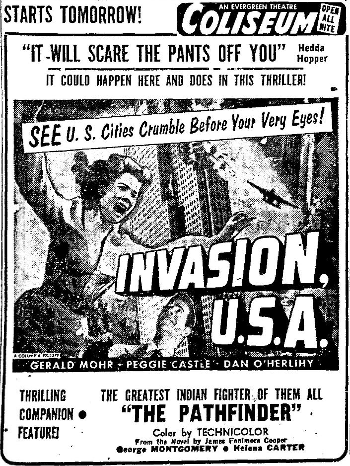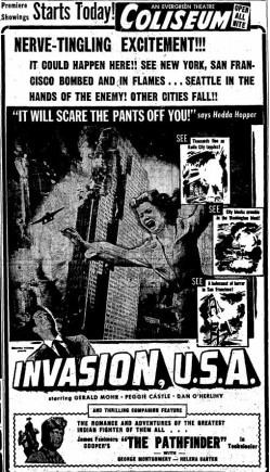 The following is a collection of print media from the initial runs of 1952's "Invasion U.S.A." in the Pacific Northwest.