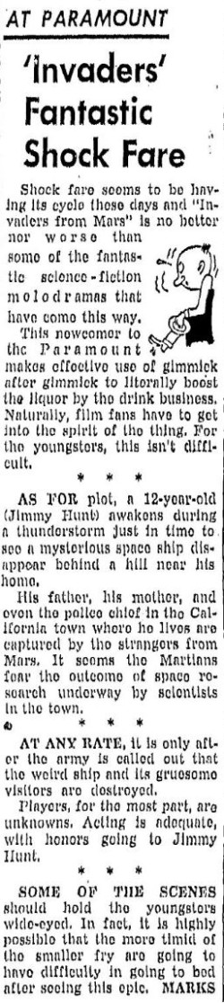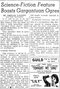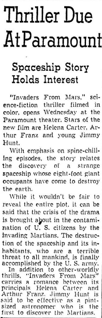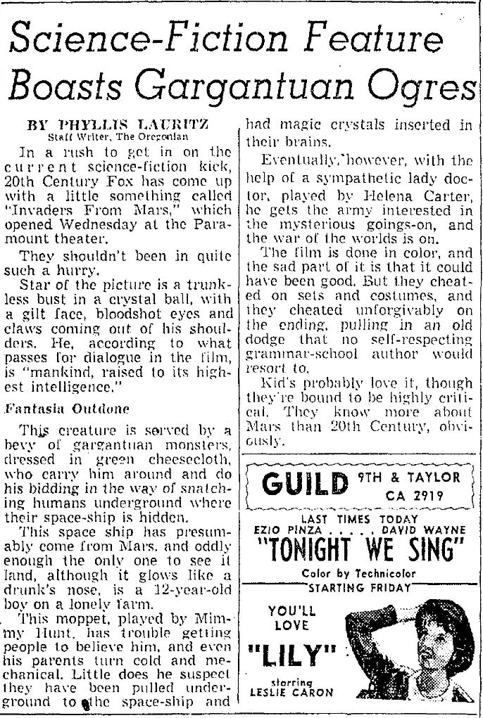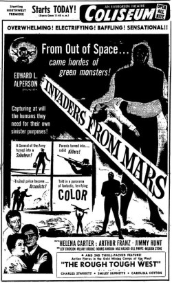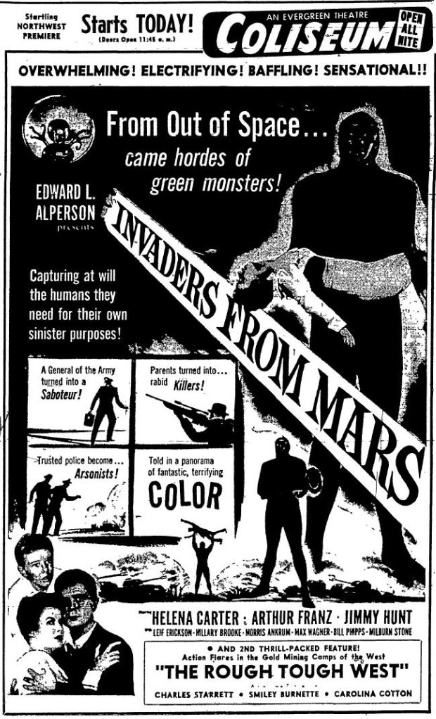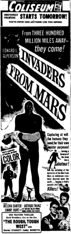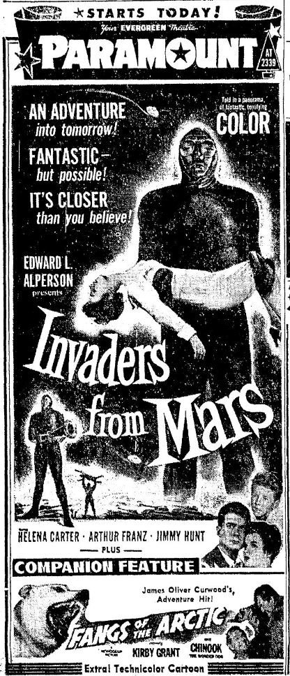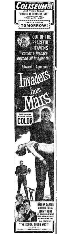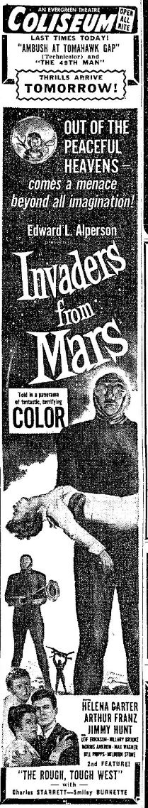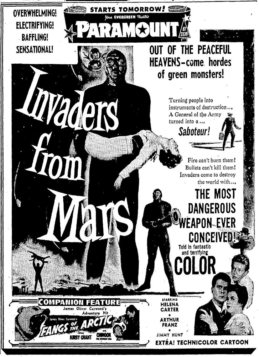 The following is a collection of print media from the initial runs of 1953's "Invaders from Mars" in the Pacific Northwest.