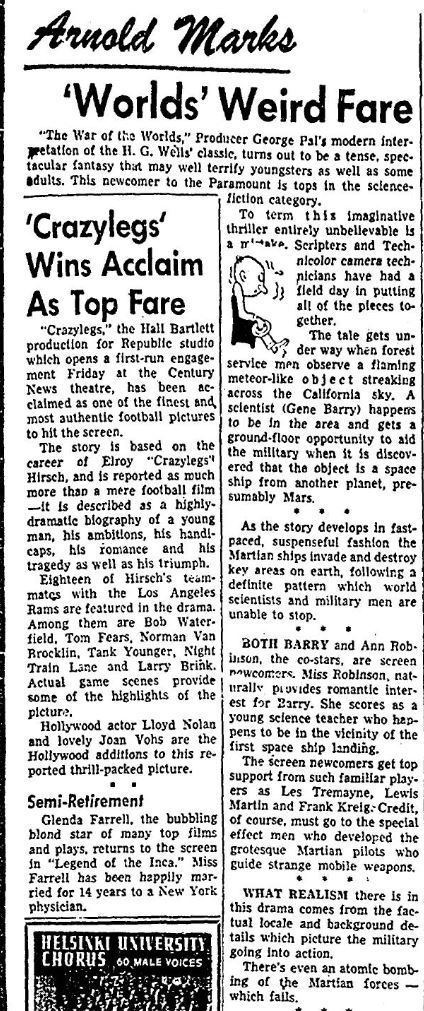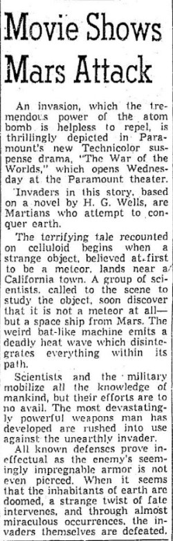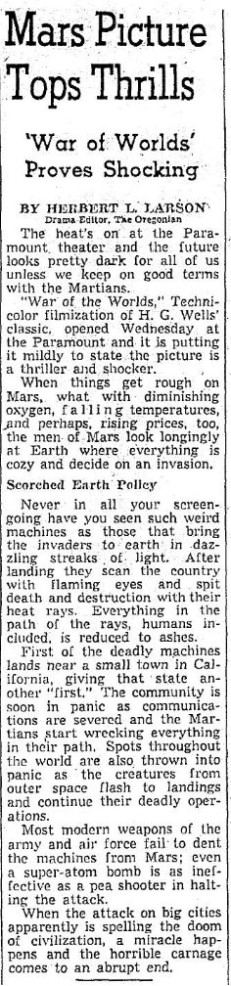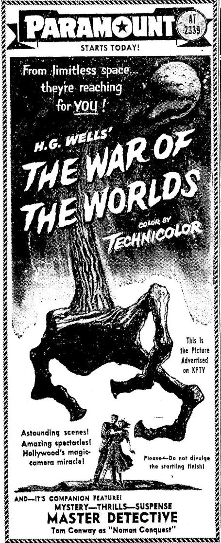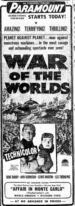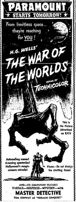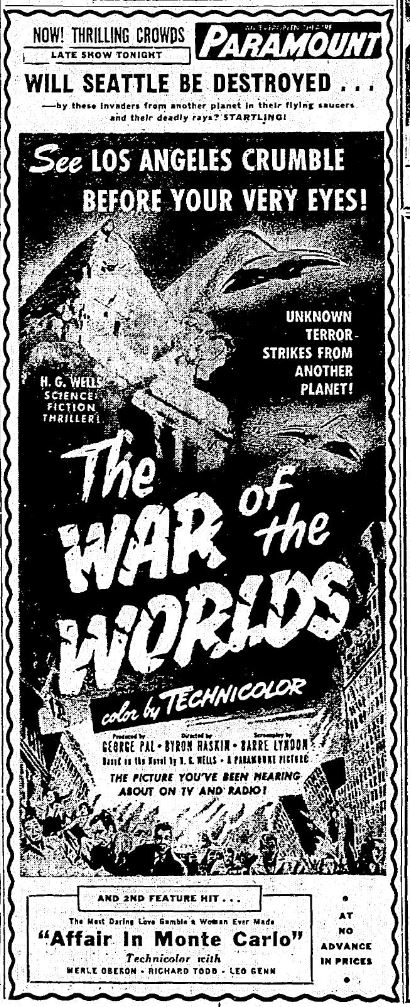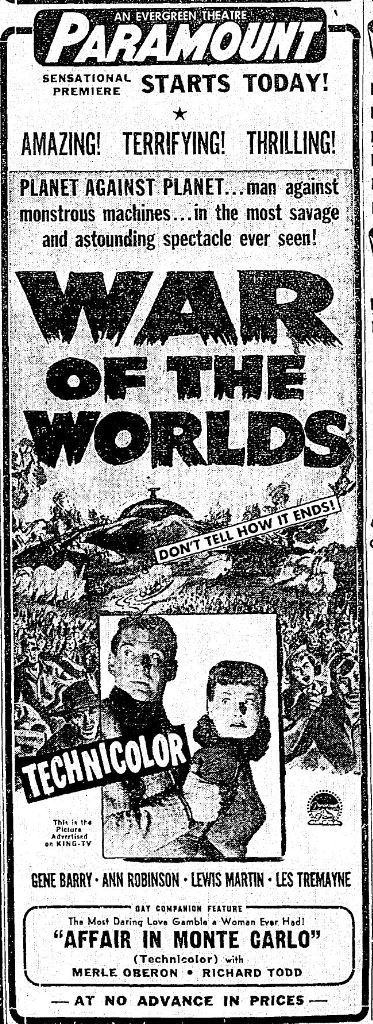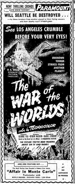 The following is a collection of print media from the initial runs of 1953's "The War of the Worlds" in the Pacific Northwest.