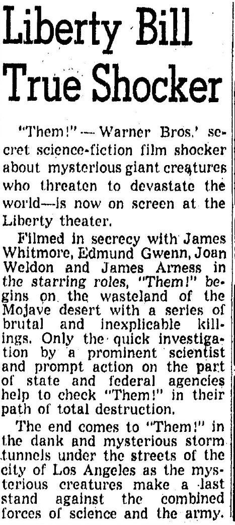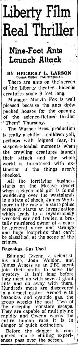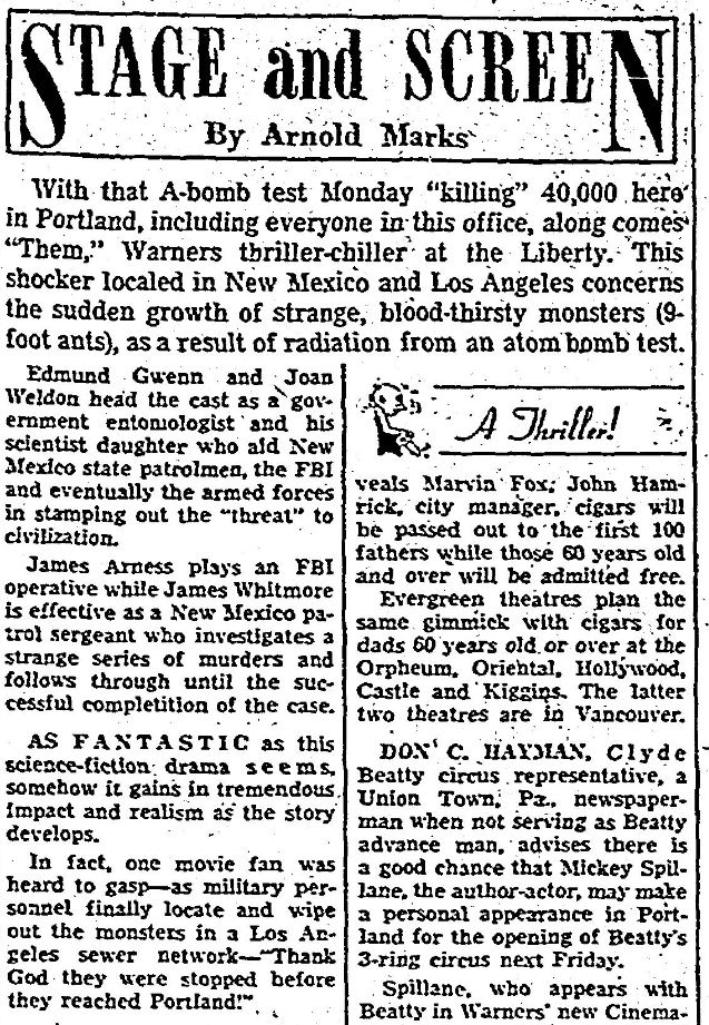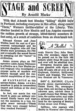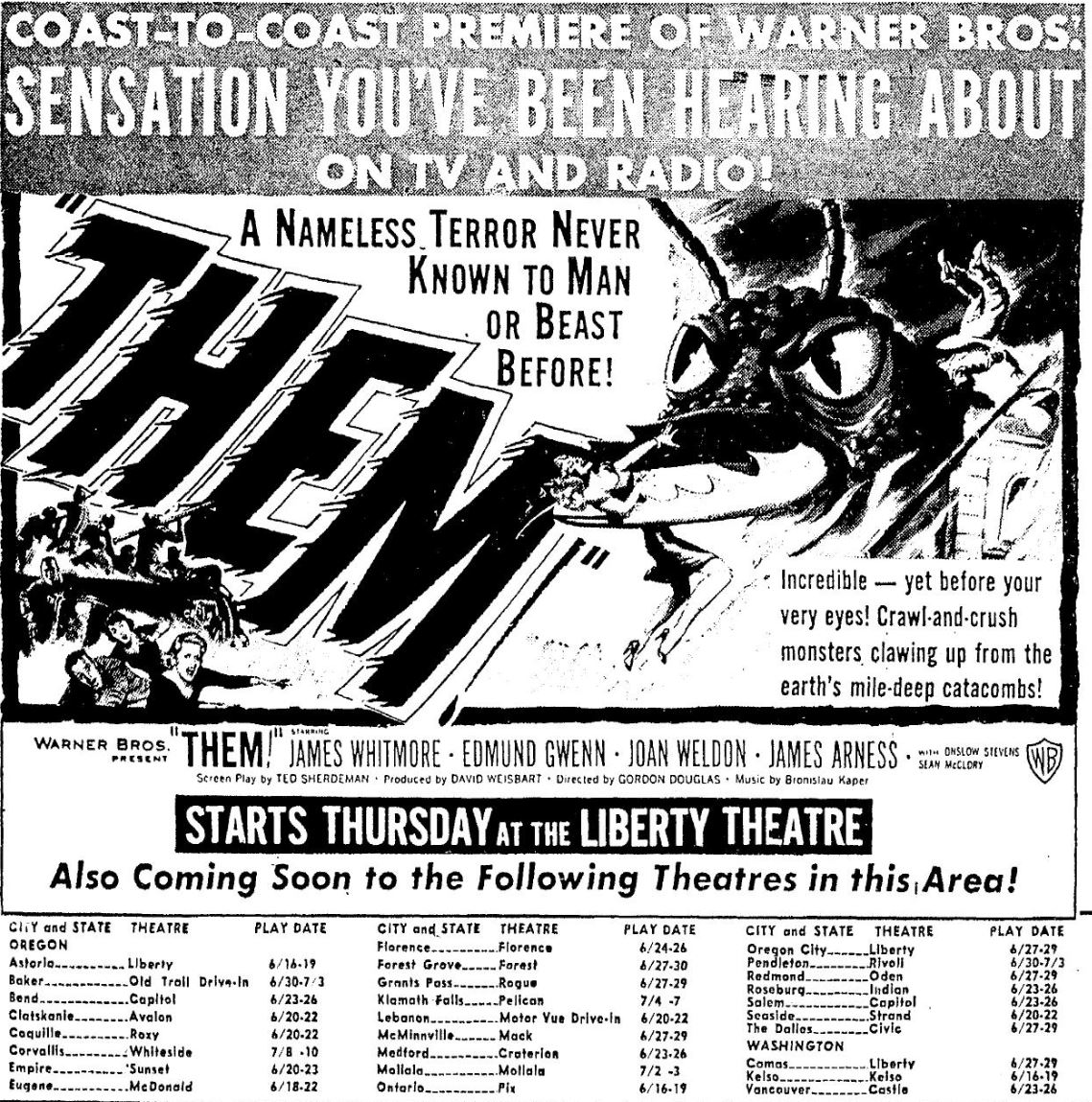 The following is a collection of print media from the initial runs of 1954's "Them!" in the Pacific Northwest.
