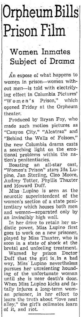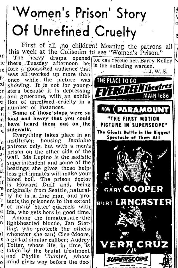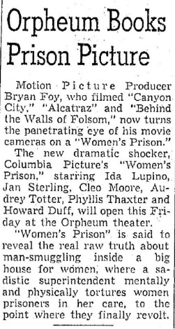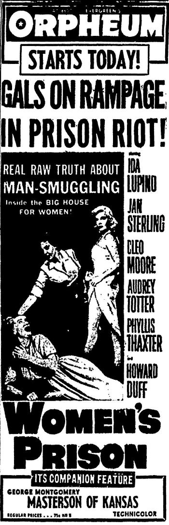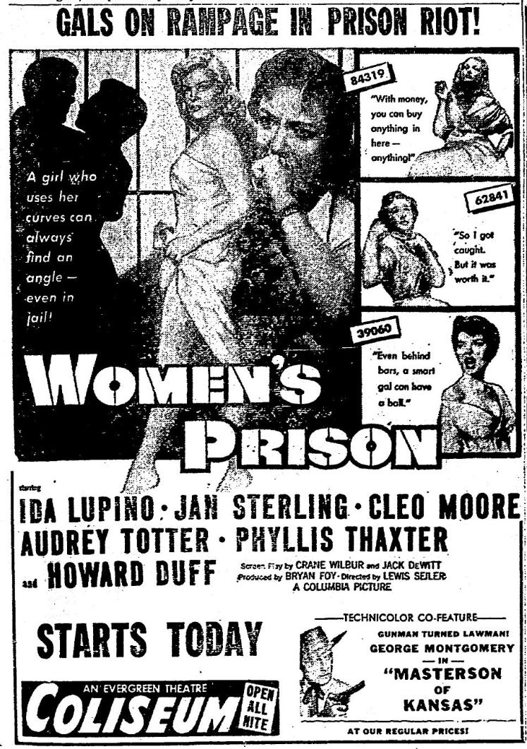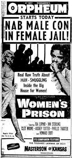 The following is a collection of print media from the initial runs of 1955's "Women's Prison" in the Pacific Northwest.