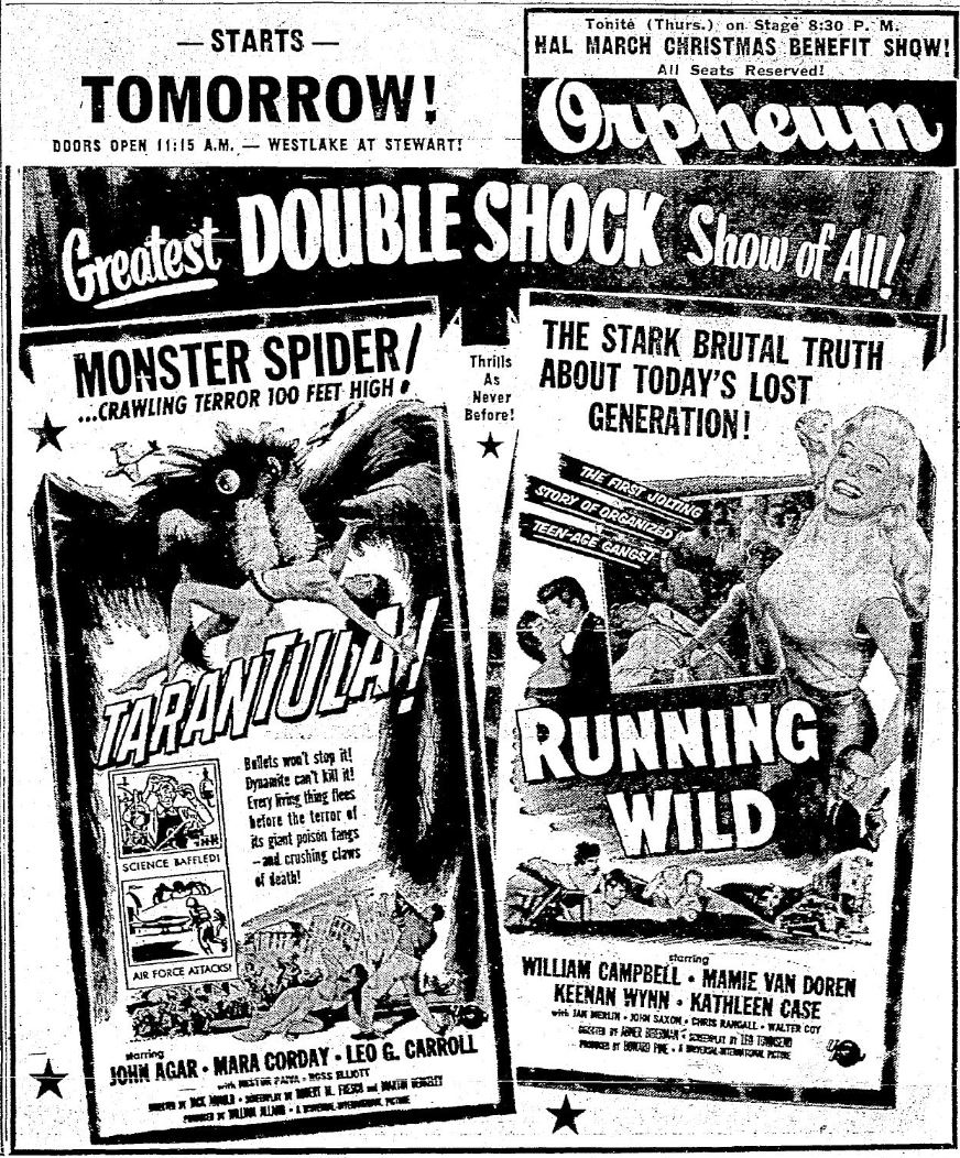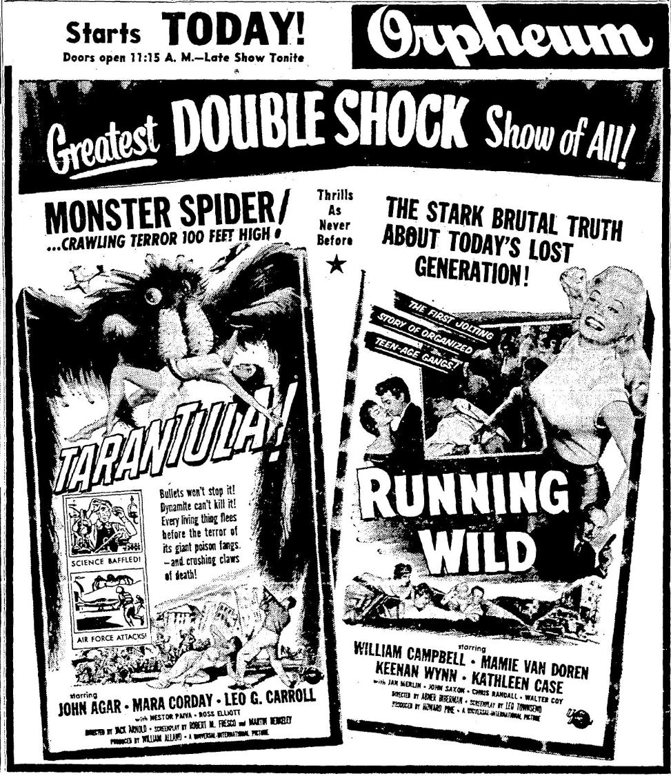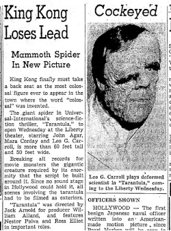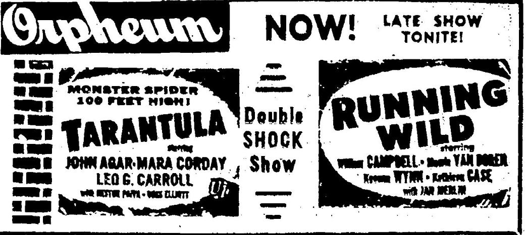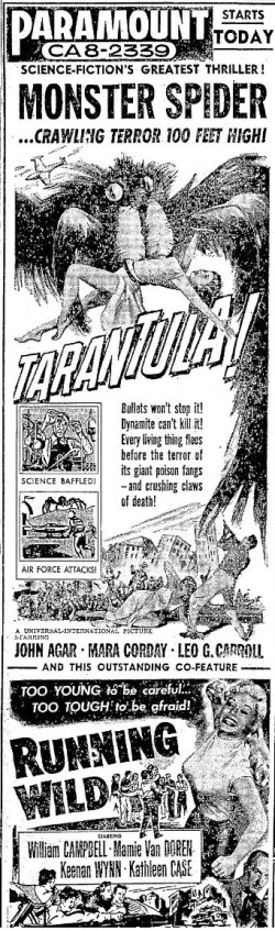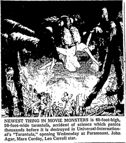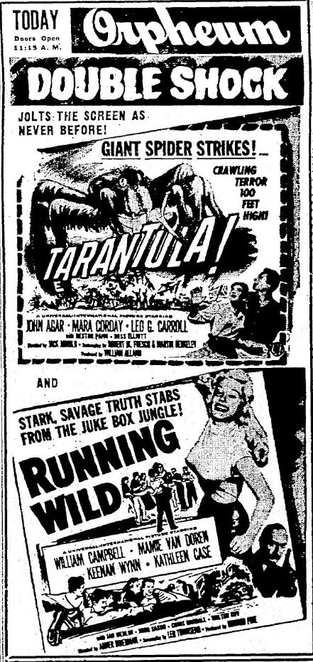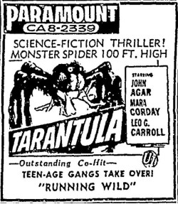 The following is a collection of print media from the initial runs of 1955's "Tarantula" in the Pacific Northwest.