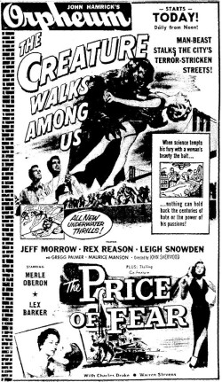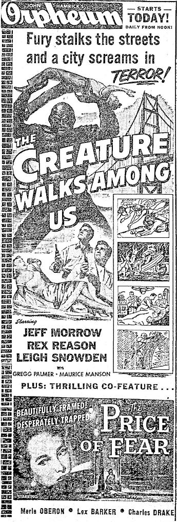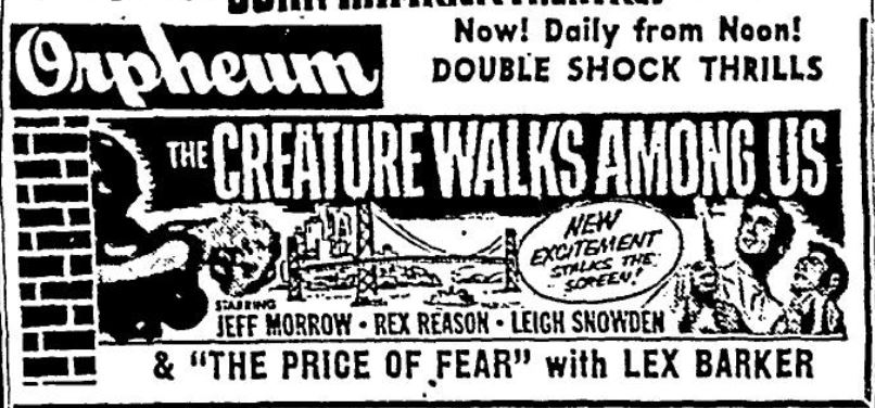 The following is a collection of print media from the initial runs of 1956's "The Creature Walks Among Us" in the Pacific Northwest.