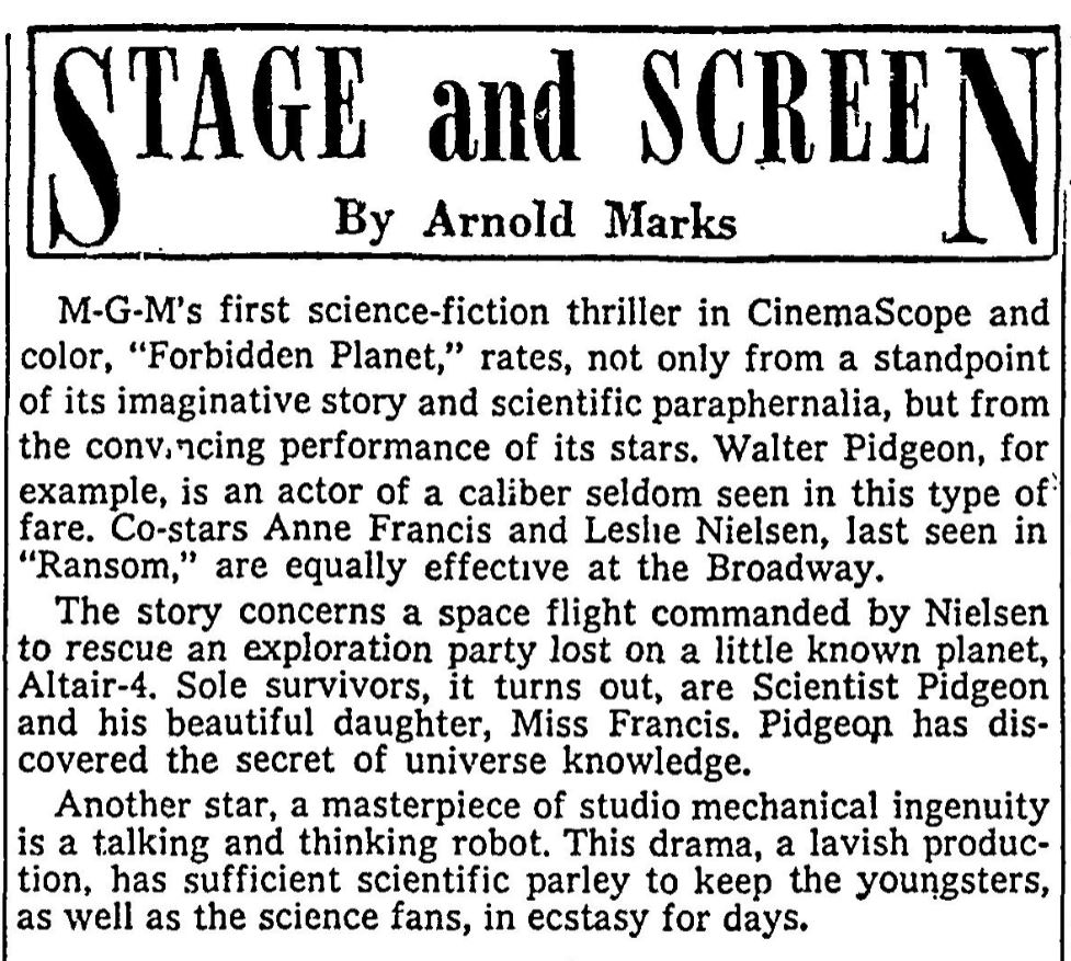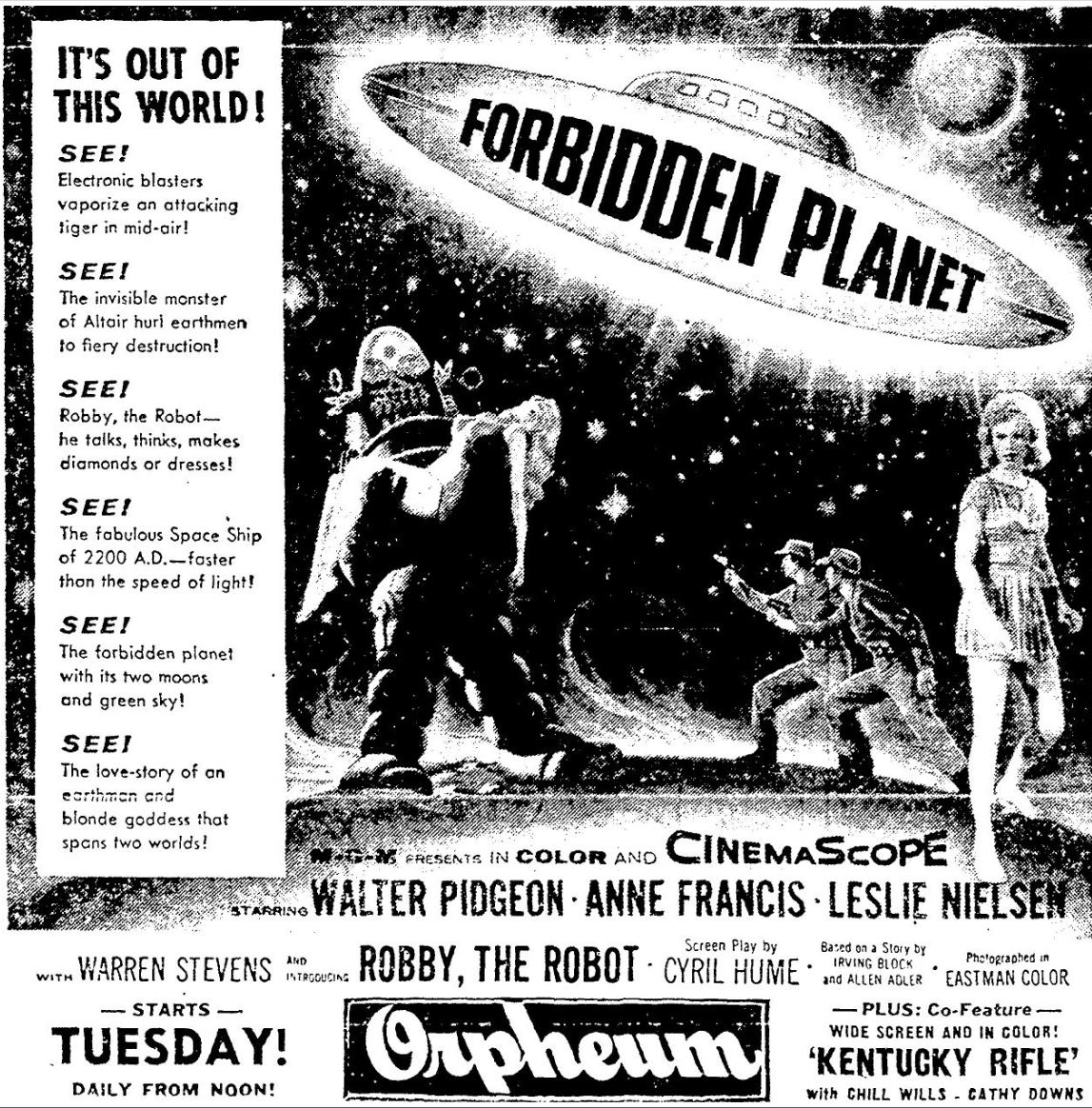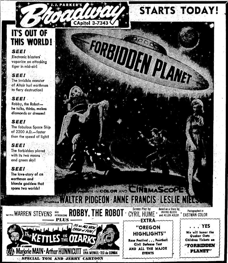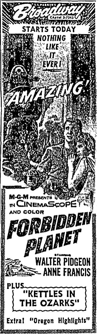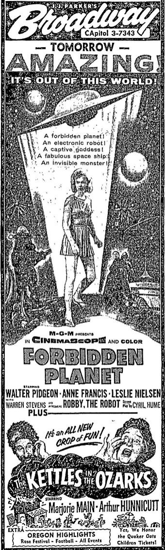 The following is a collection of print media from the initial runs of 1956's "Forbidden Planet" in the Pacific Northwest.