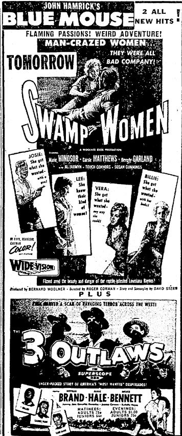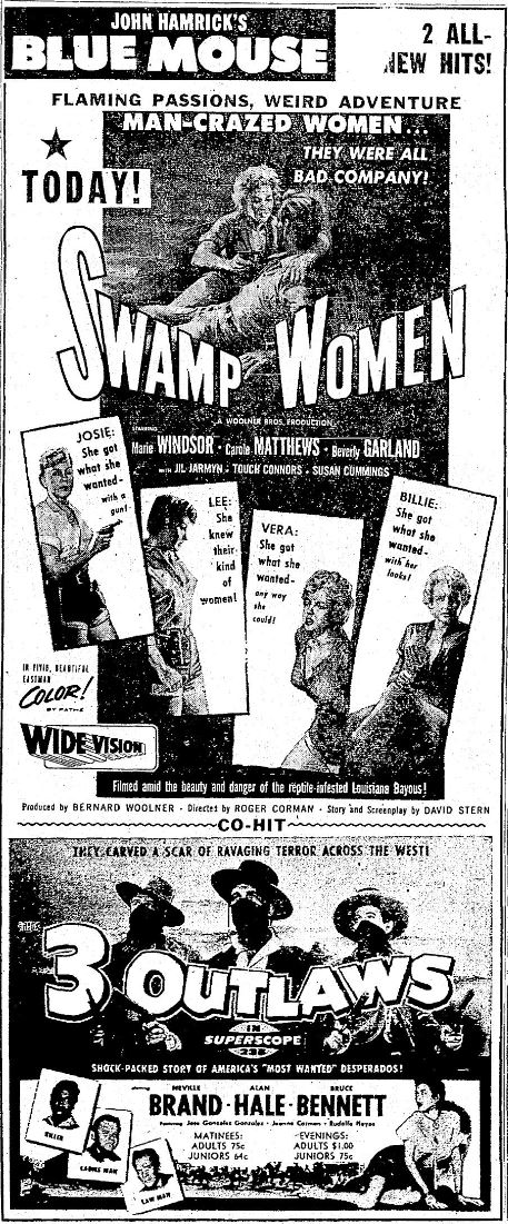 The following is a collection of print media from the initial runs of 1956's "Swamp Women" in the Pacific Northwest. This film didn't seem to get a proper run in Portland.