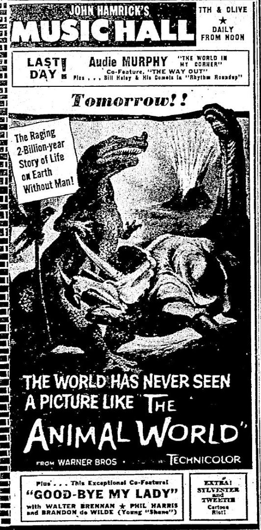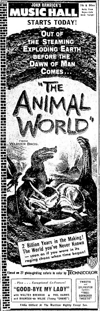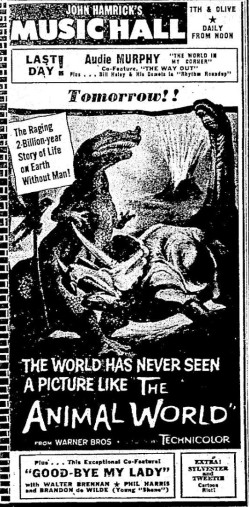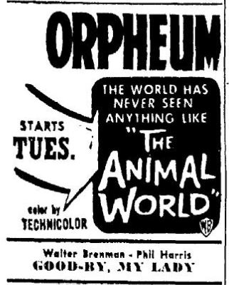 This page features several other films that had their first PNW runs in 1956 but didn't have enough material for their own pages. I was unable to locate any Portland runs for any of these films other than "The Animal World."