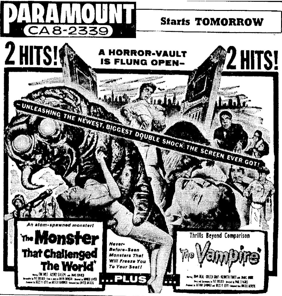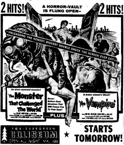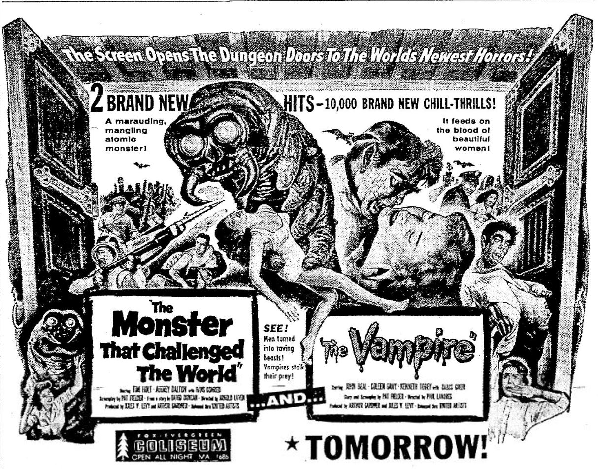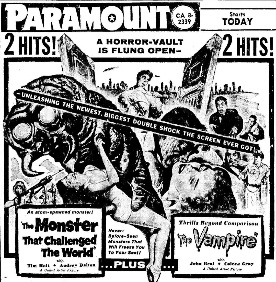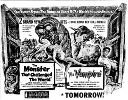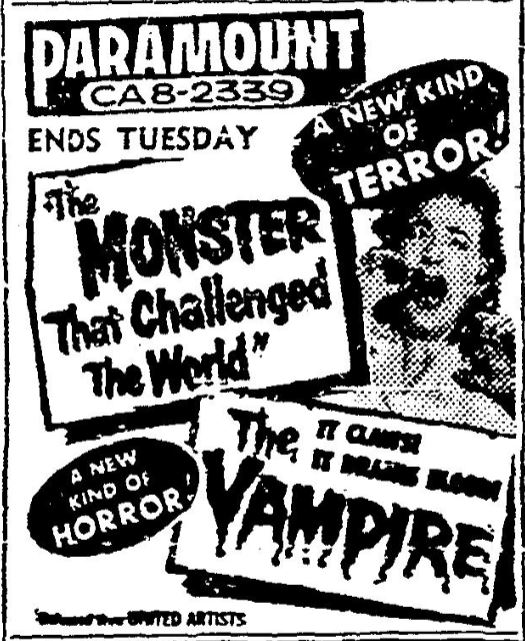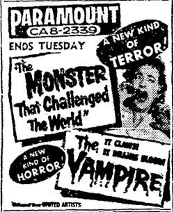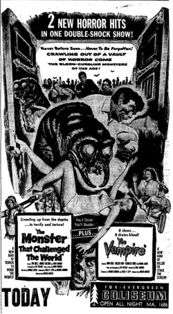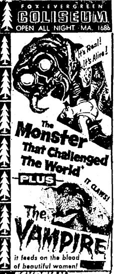 The following is a collection of print media from the initial runs of 1957's "The Monster That Challenged the World" in the Pacific Northwest. "The Vampire" was the second feature in both cities.