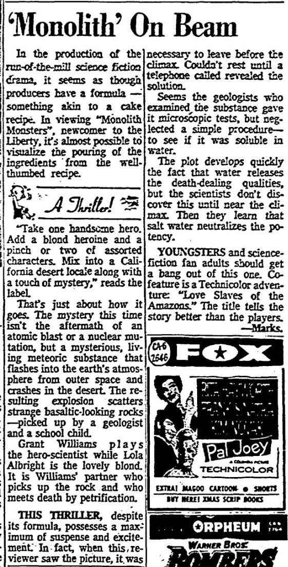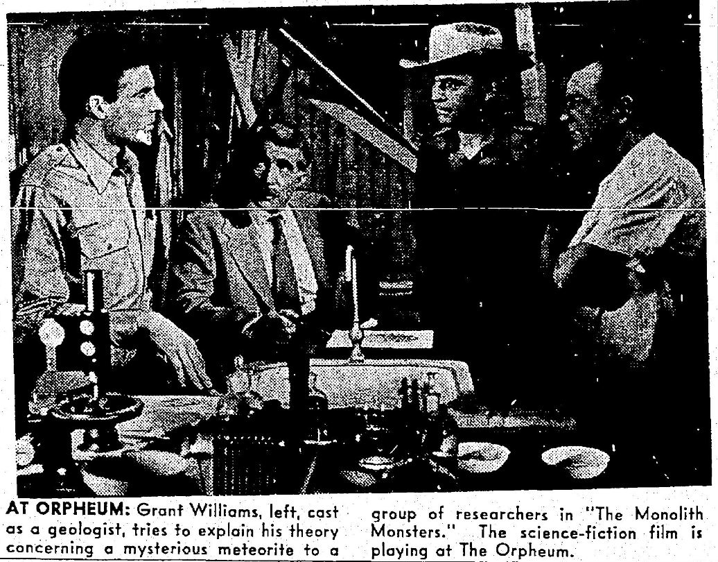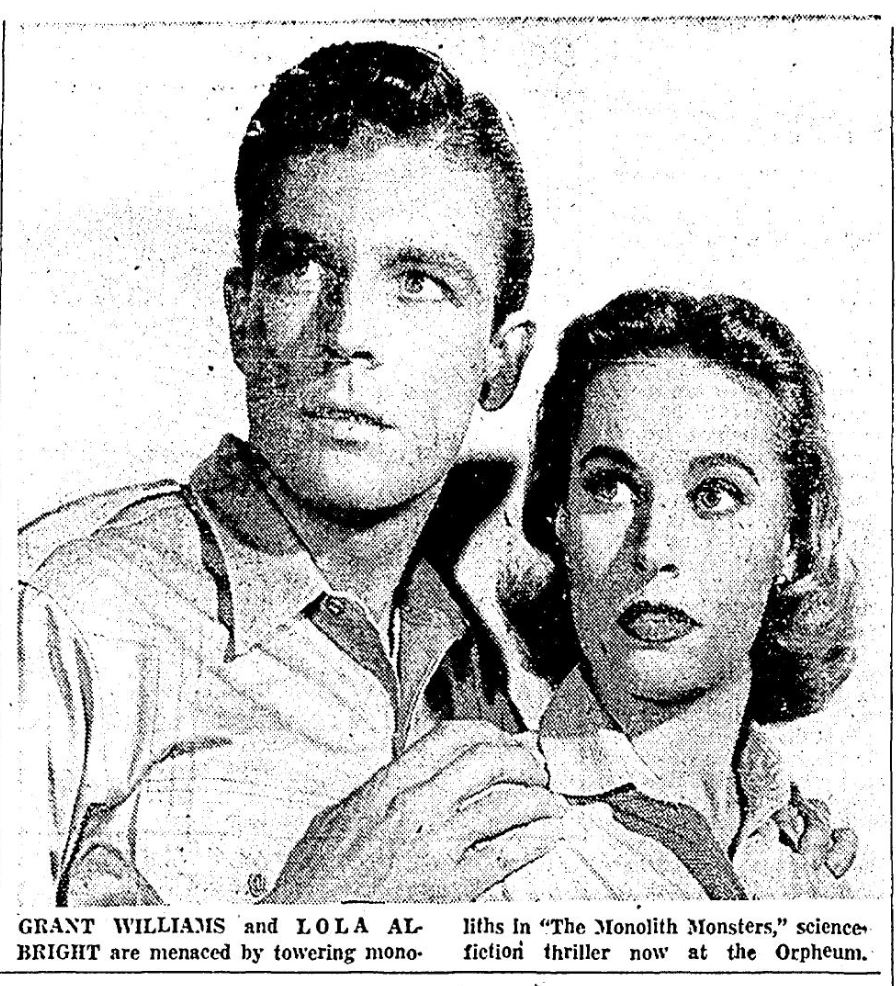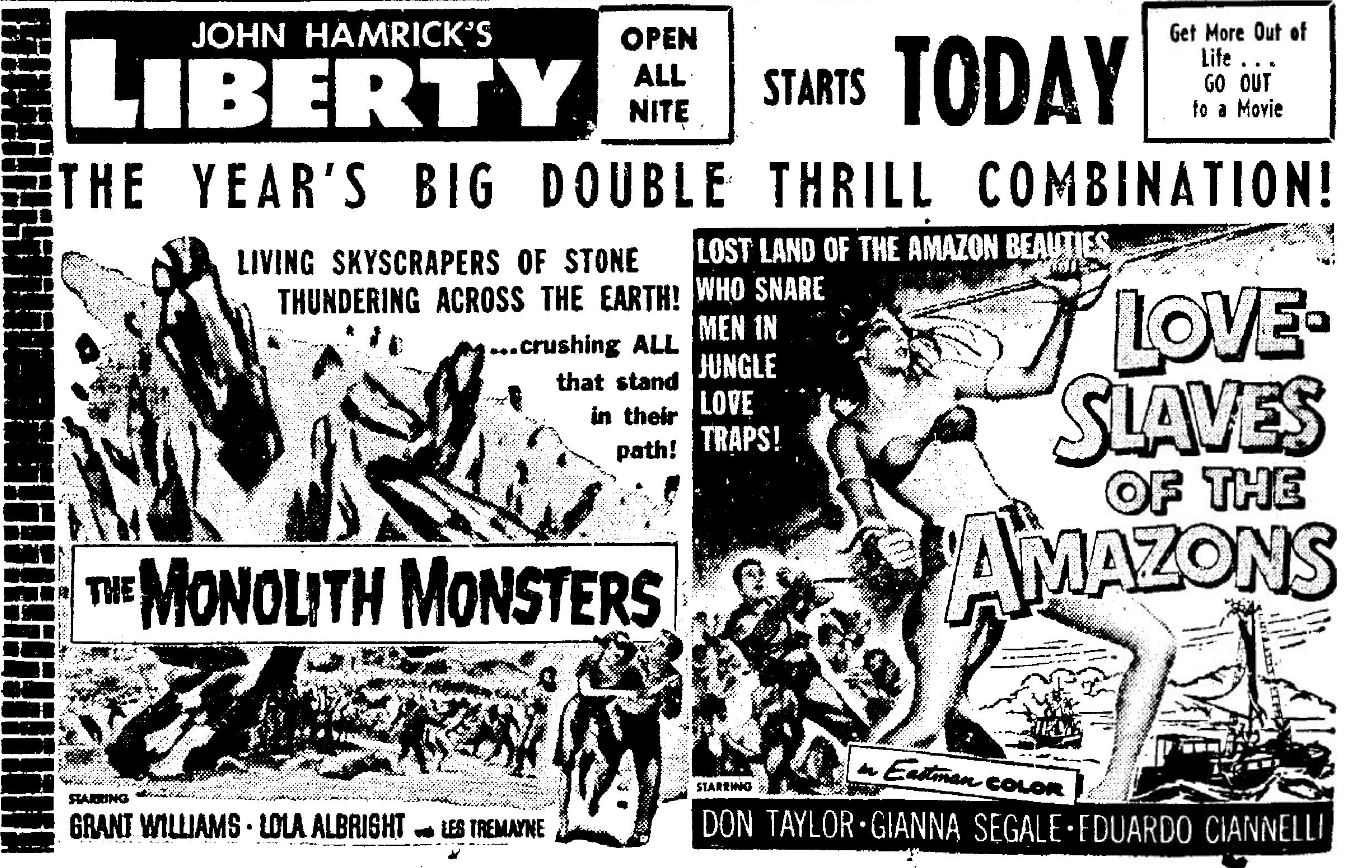 The following is a collection of print media from the initial runs of 1957's "The Monolith Monsters" in the Pacific Northwest. "Love Slaves of the Amazons" was the second feature in both cities.