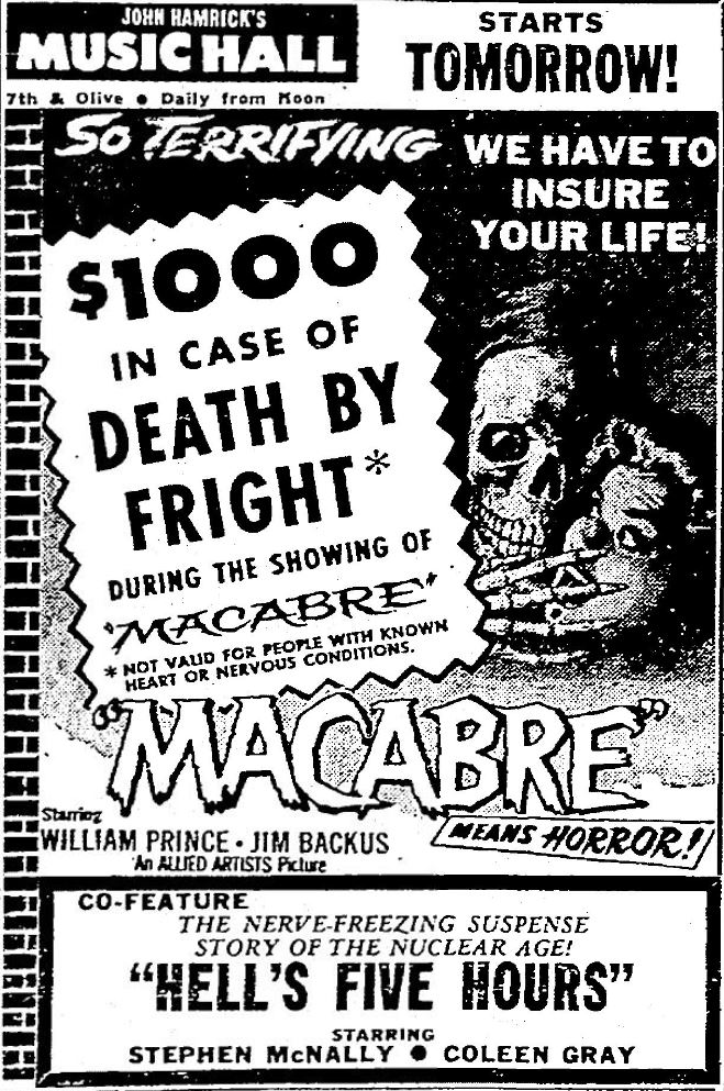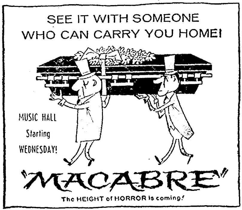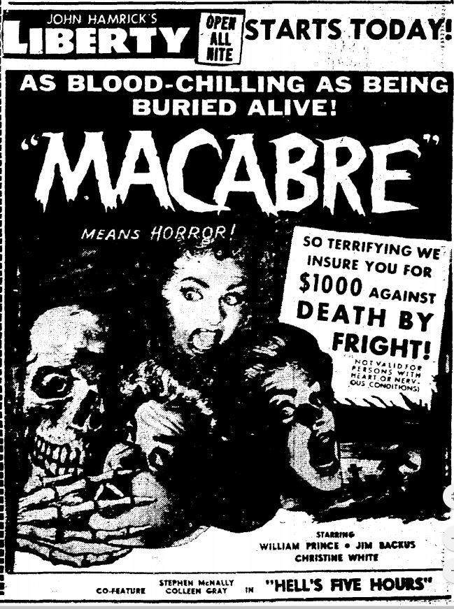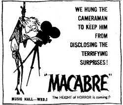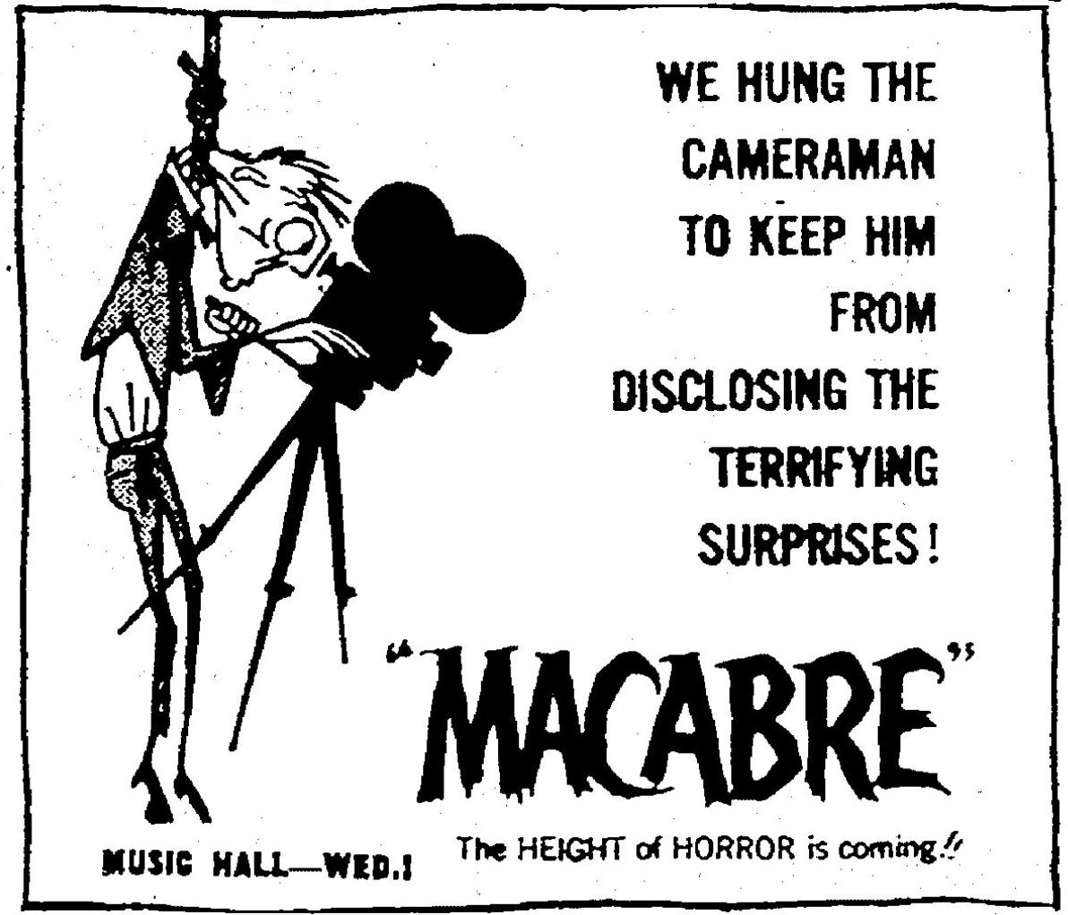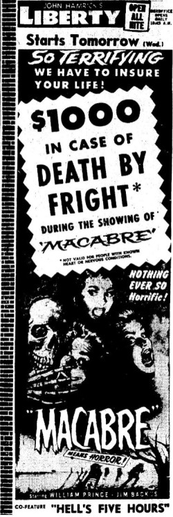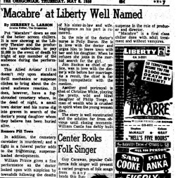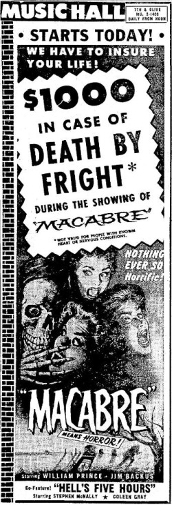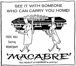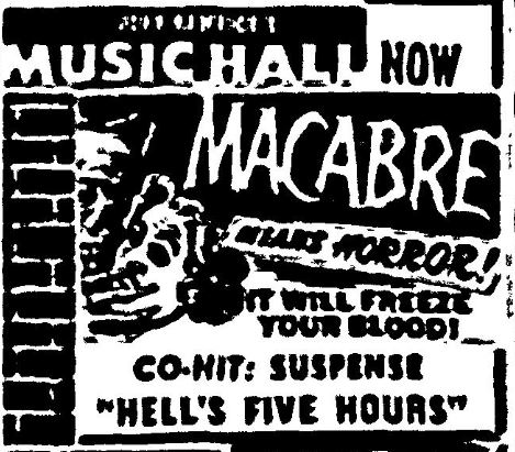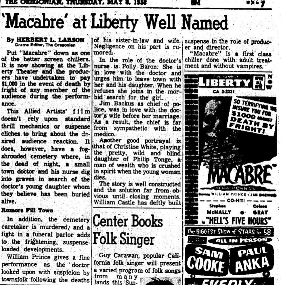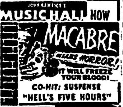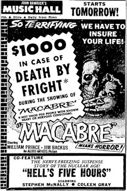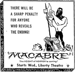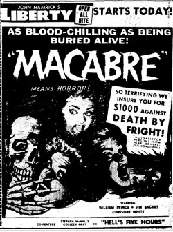 The following is a collection of print media from the initial runs of 1958's "Macabre" in the Pacific Northwest.