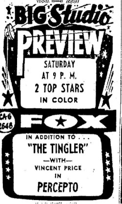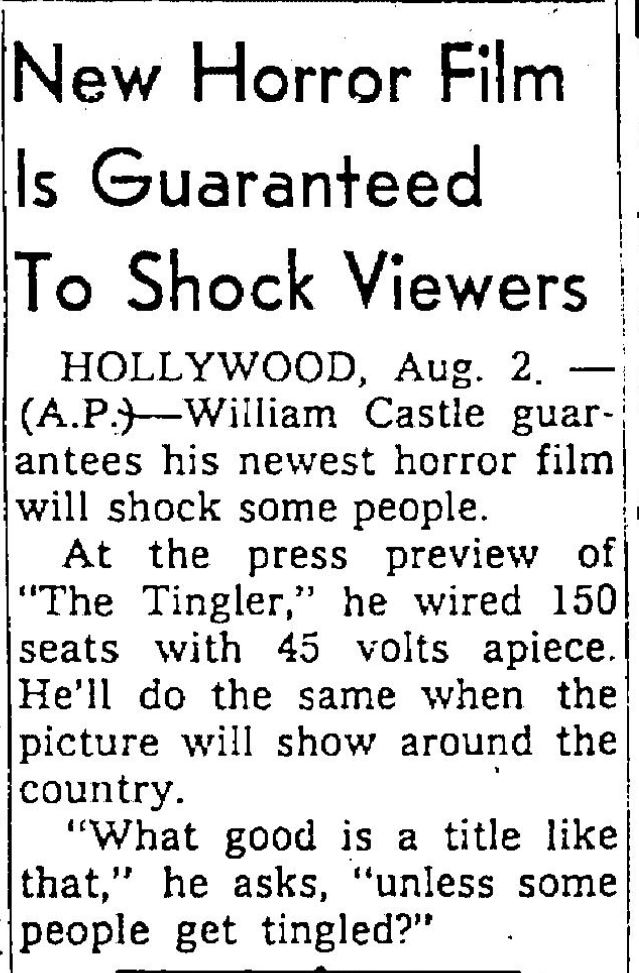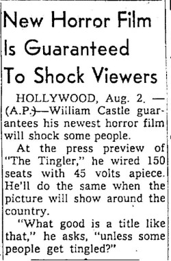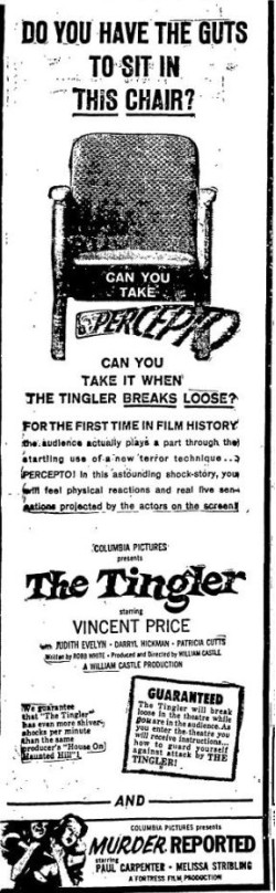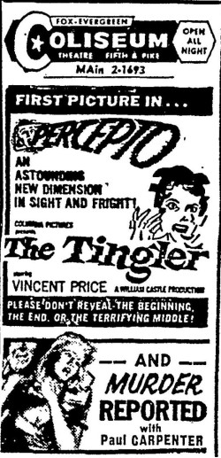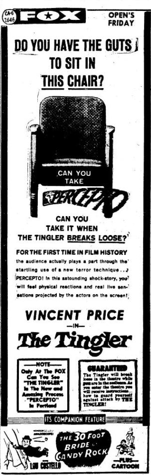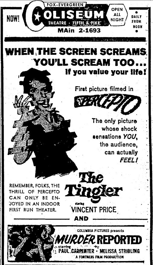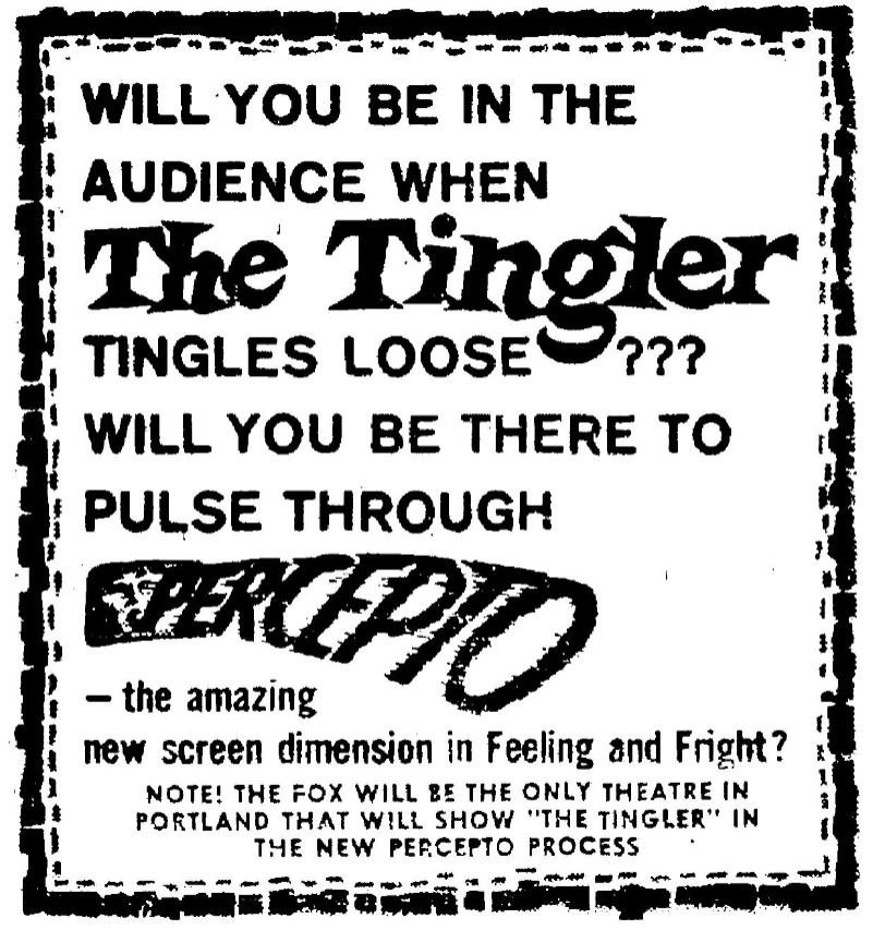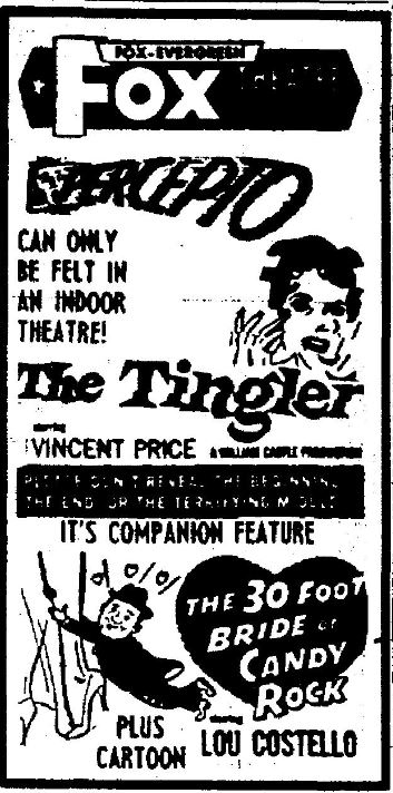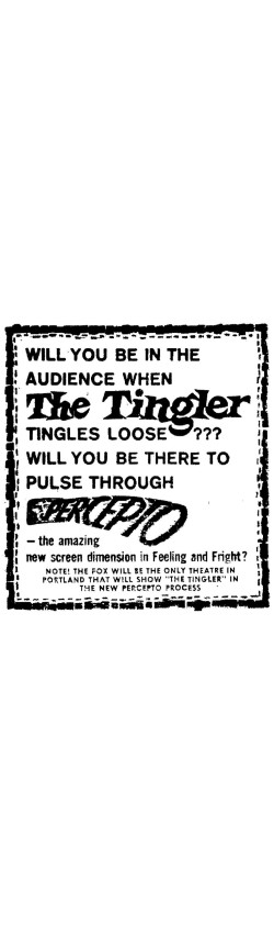 The following is a collection of print media from the initial runs of 1959's "The Tingler" in the Pacific Northwest.