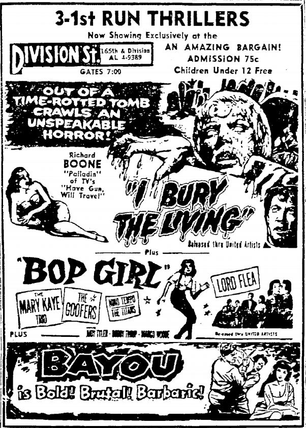 The following is a collection of print media from the initial runs of 1958's "I Bury the Living" in the Pacific Northwest.