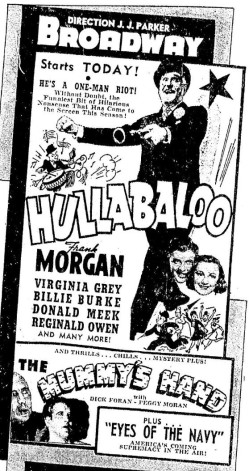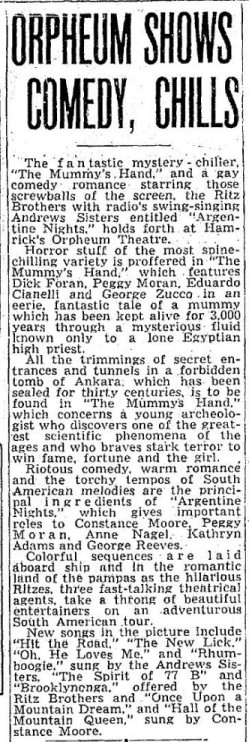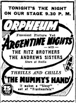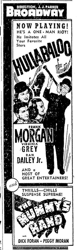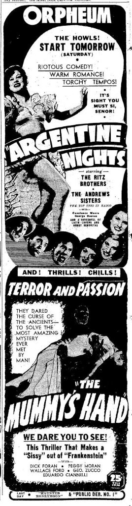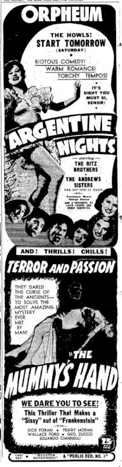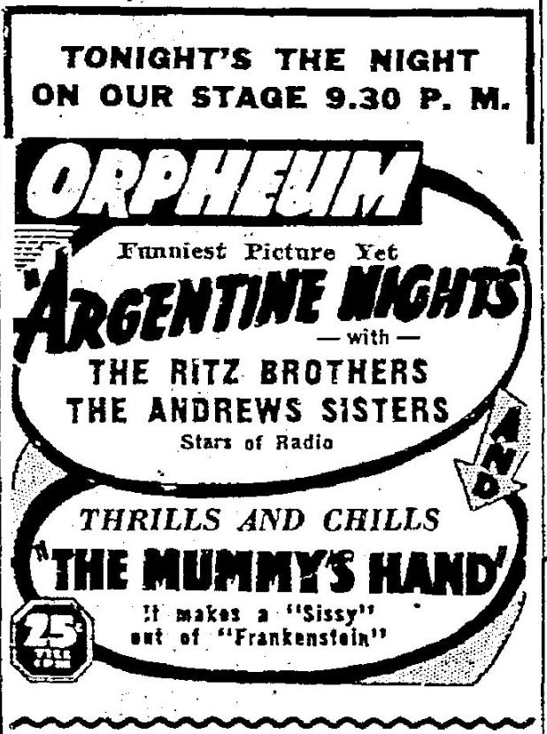 The Mummy's Hand (1940) - Given second billing with comedies, this one didn't seem to make much of a splash in the PNW. And what's up with movies claiming to make sissies out of "Frankenstein?" I guess it's technically true but come on!