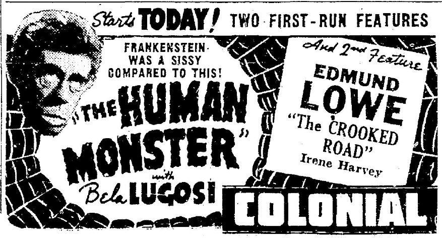 The Human Monster (1939): This Edgar Wallace-based thriller only appeared to play in Seattle and only for two days.