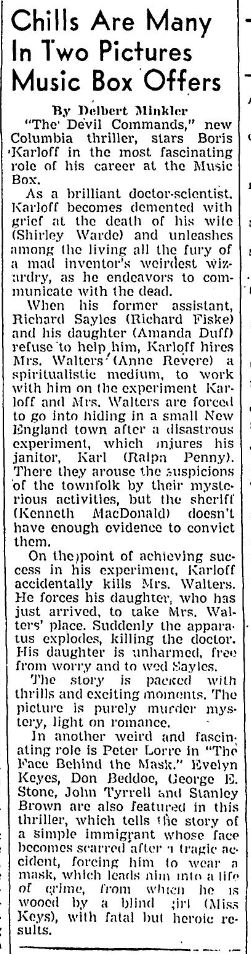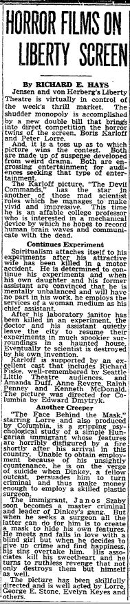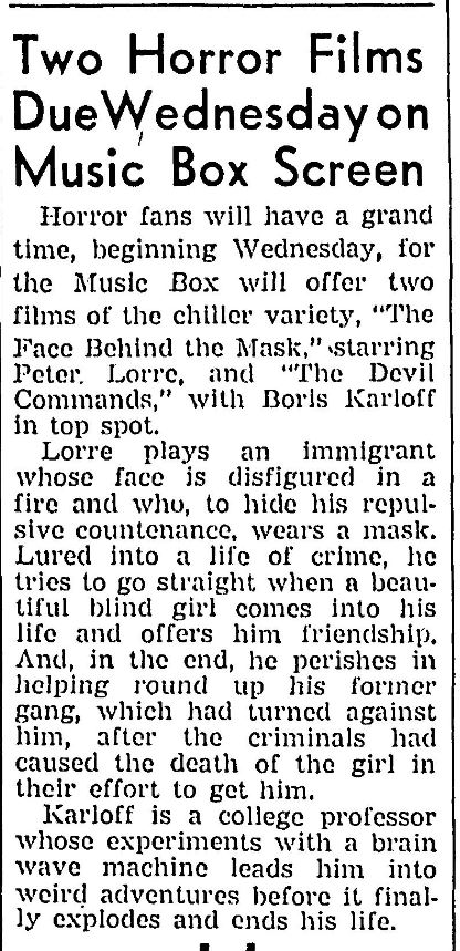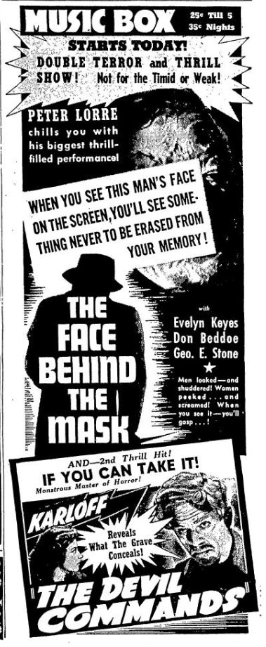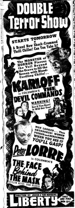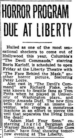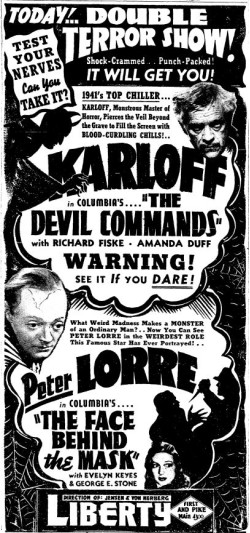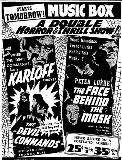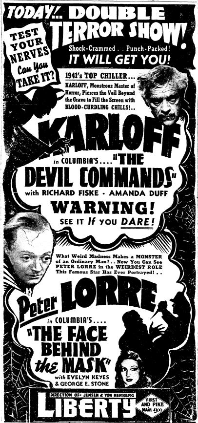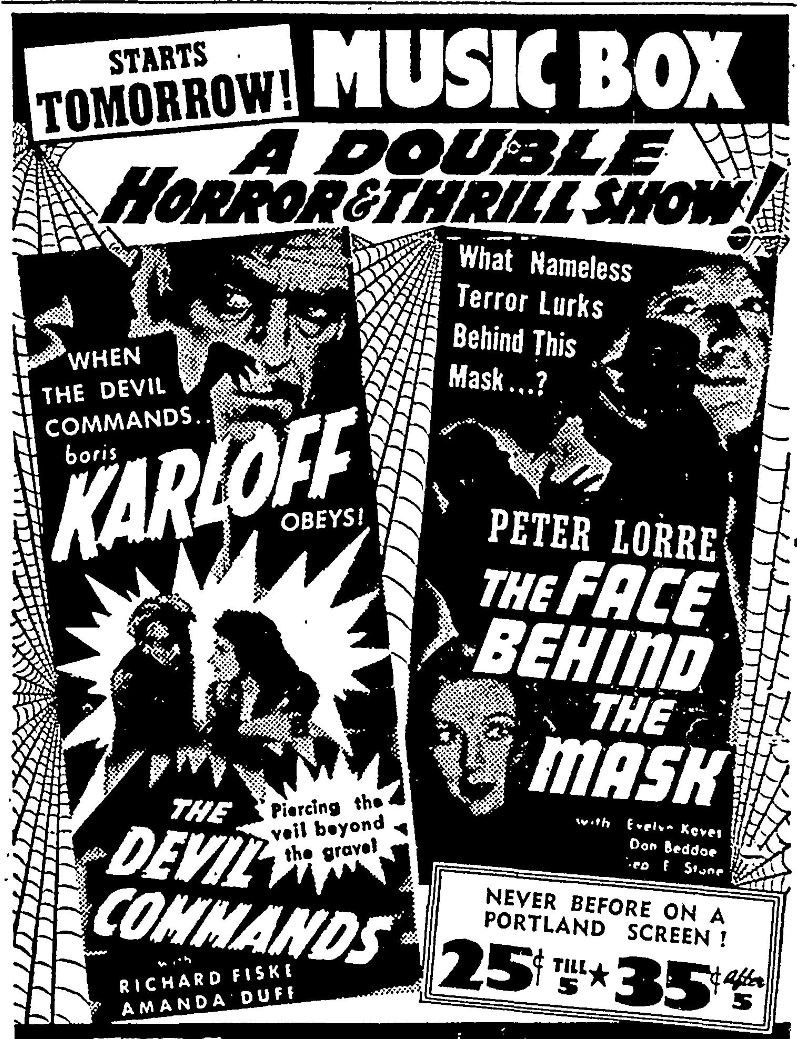 The following is a collection of print media from the initial runs of 1941's "The Devil Commands" in the Pacific Northwest. With "The Face Behind the Mask" as the companion this was an impressive double-feature.