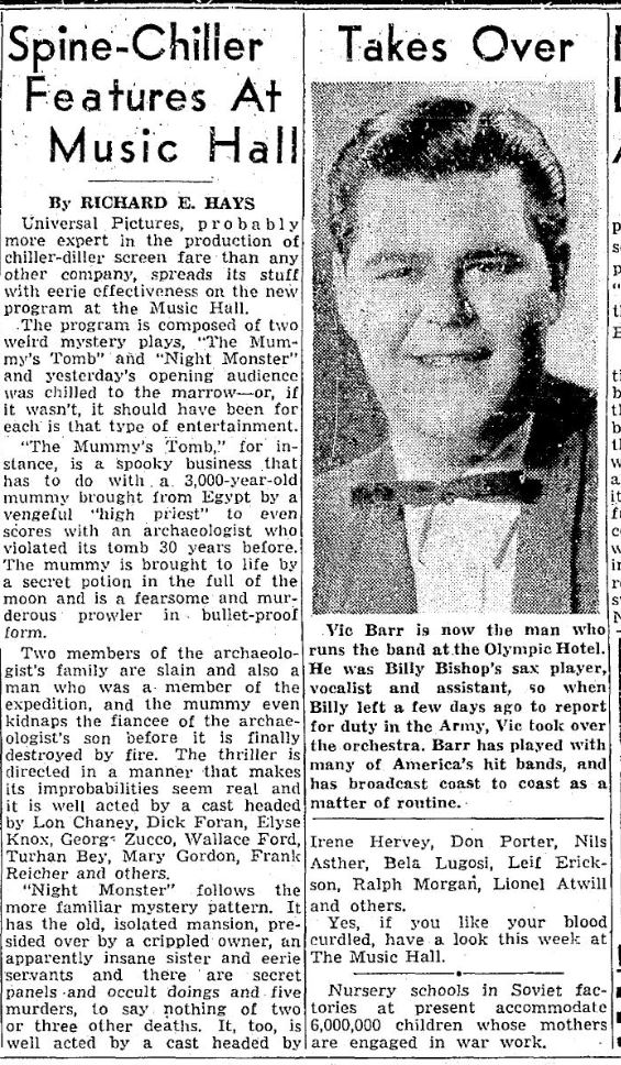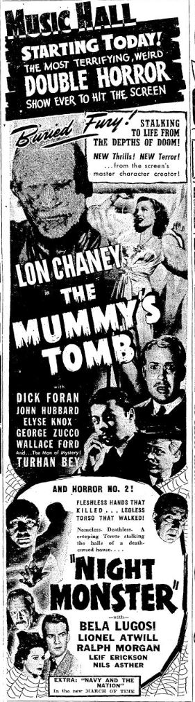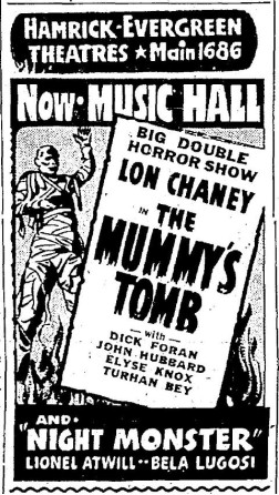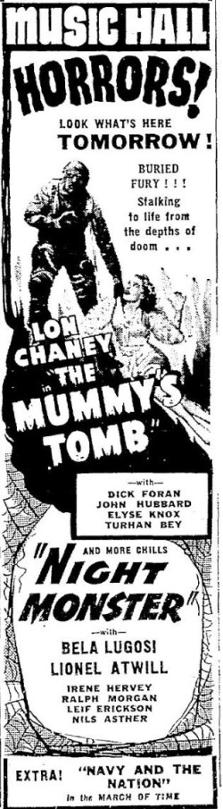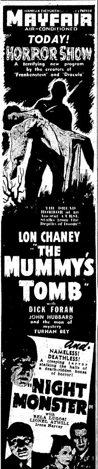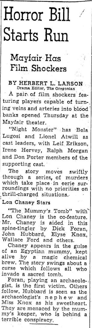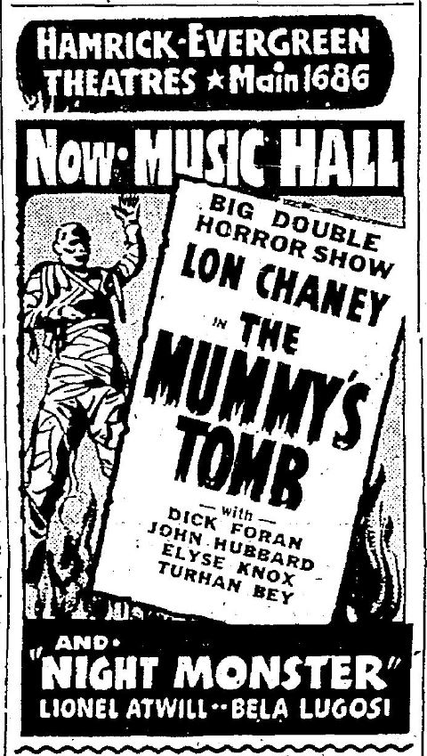 The following is a collection of print media from the initial runs of 1942's "The Mummy's Tomb" in the Pacific Northwest.
