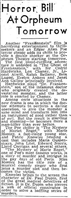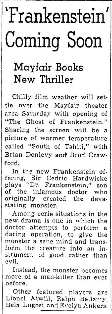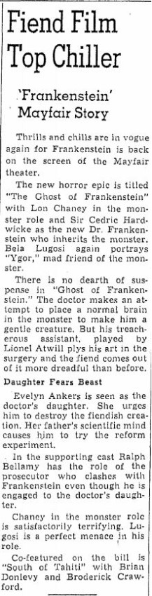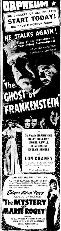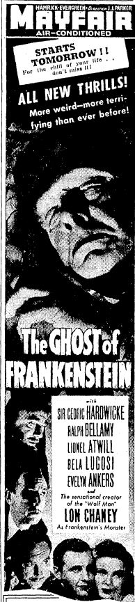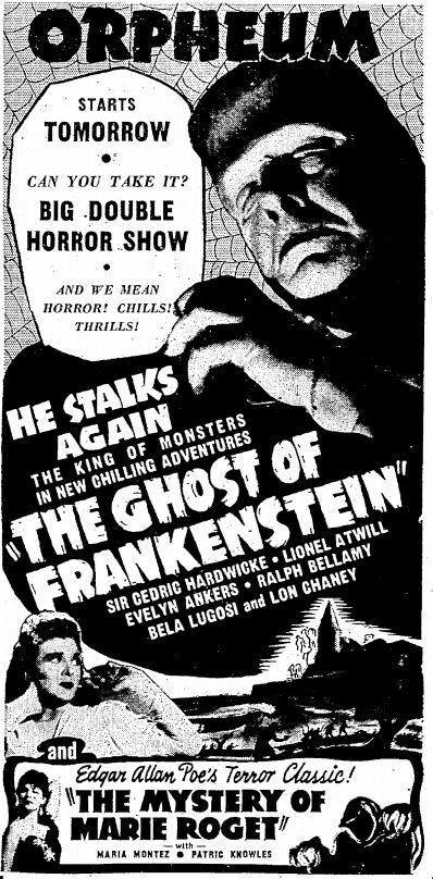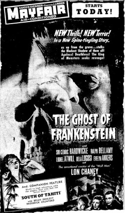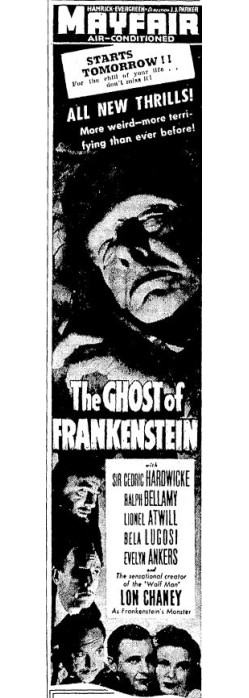 The following is a collection of print media from the initial runs of 1942's "The Ghost of Frankenstein" in the Pacific Northwest.