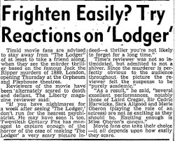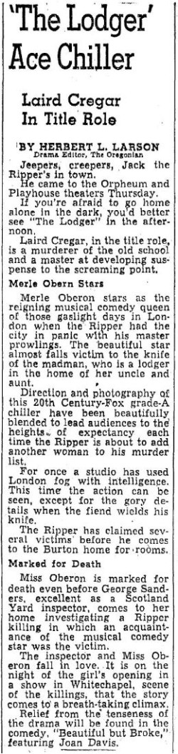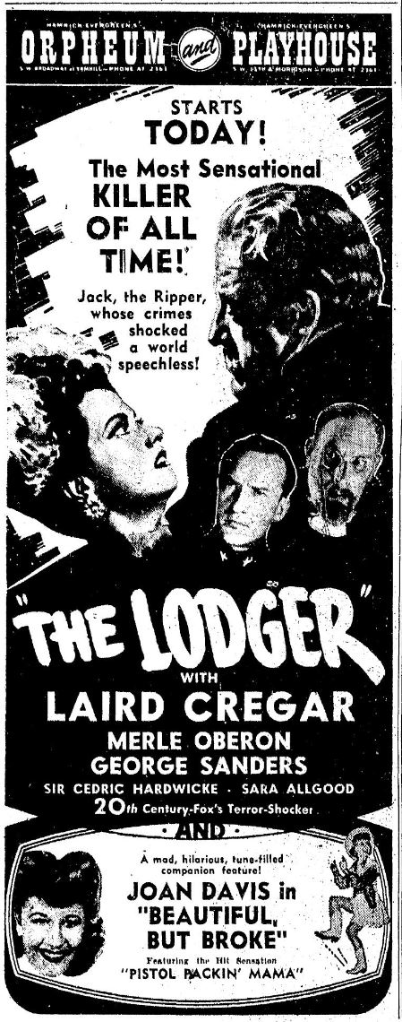 The following is a collection of print media from the initial runs of 1944's "The Lodger" in the Pacific Northwest.
