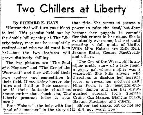 This is the second of two collections of print media from other noteworthy films that played the Pacific Northwest in 1944.