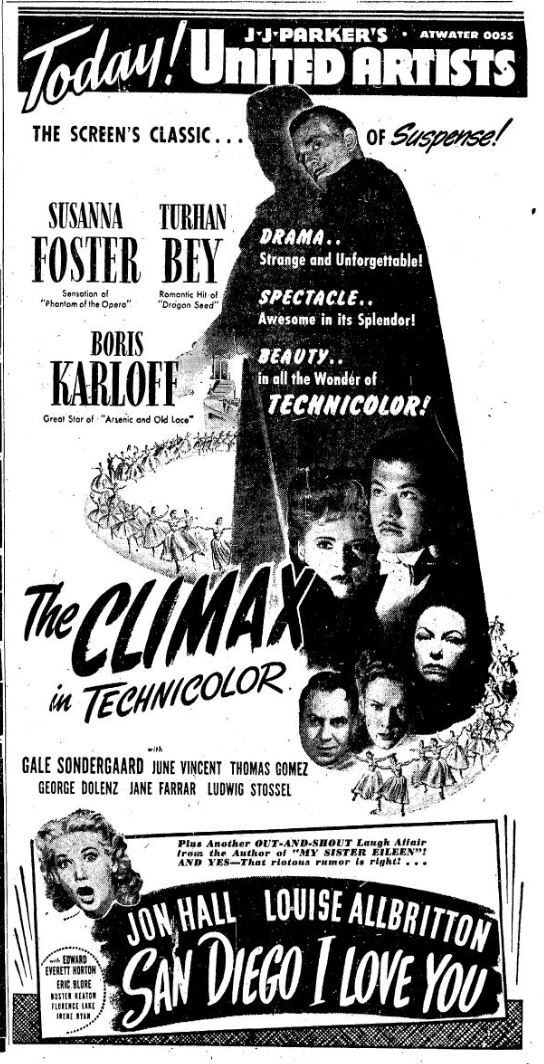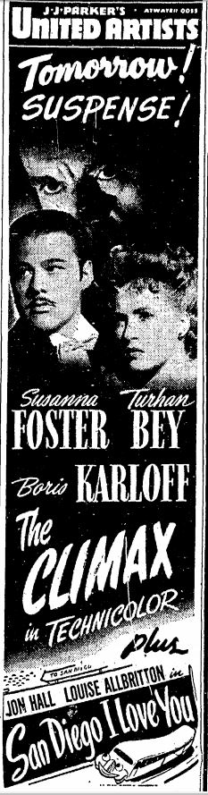 Stars: Boris Karloff, Susanna Foster, Turhan Bey
