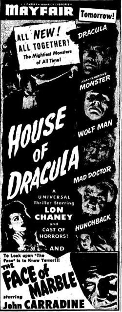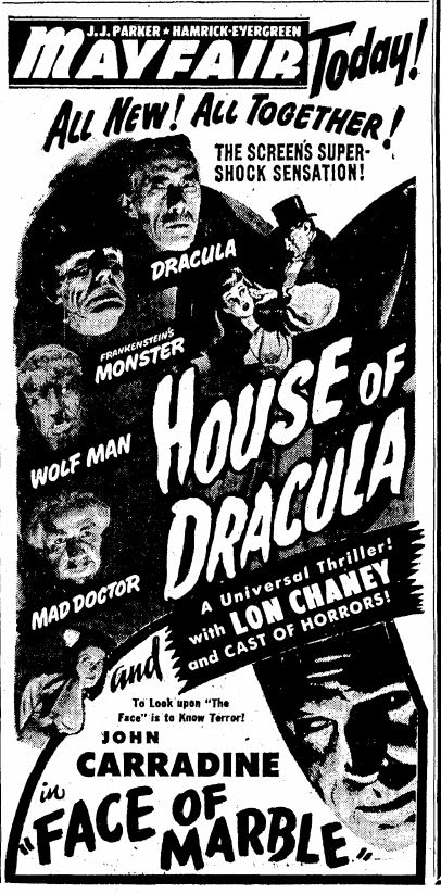 The following is a collection of print media from the initial runs of 1945's "House of Dracula" in the Pacific Northwest.