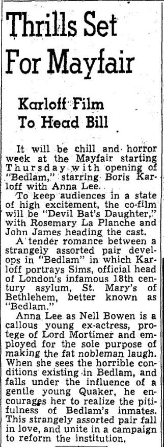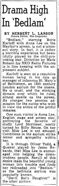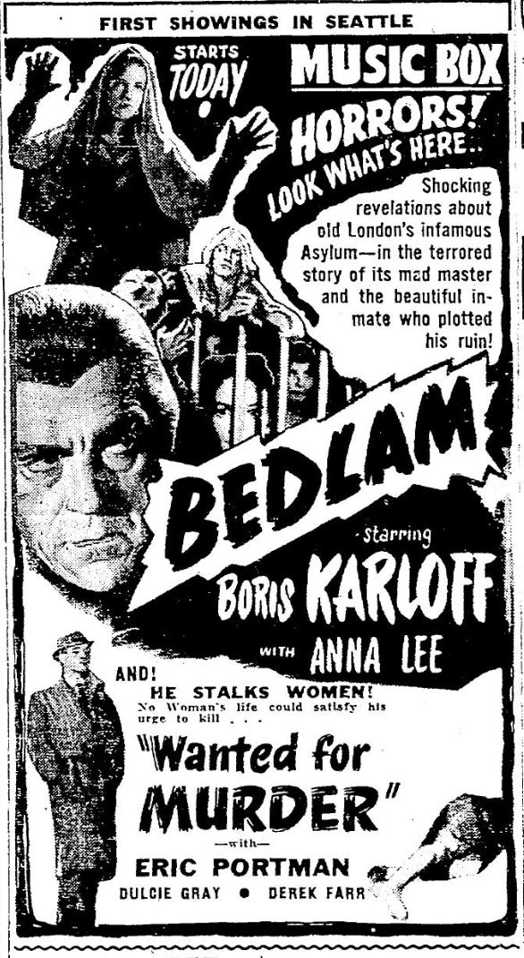 The following is a collection of print media from the initial runs of 1946's "Bedlam" in the Pacific Northwest.