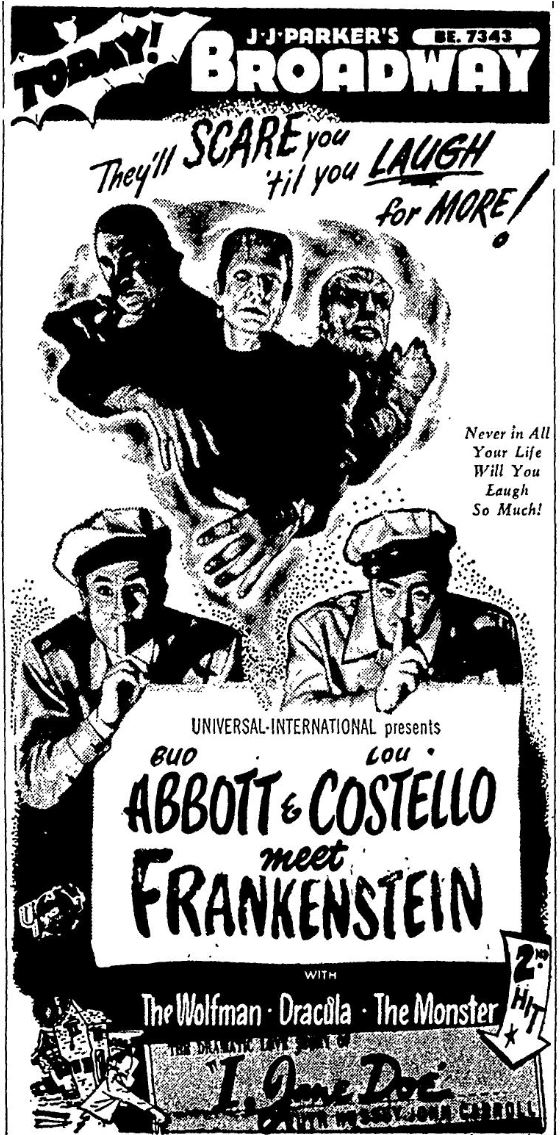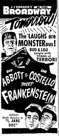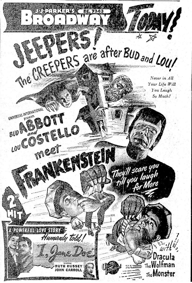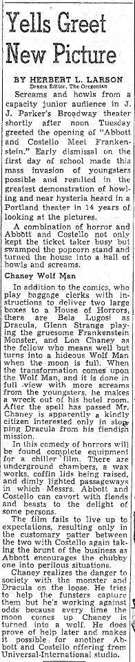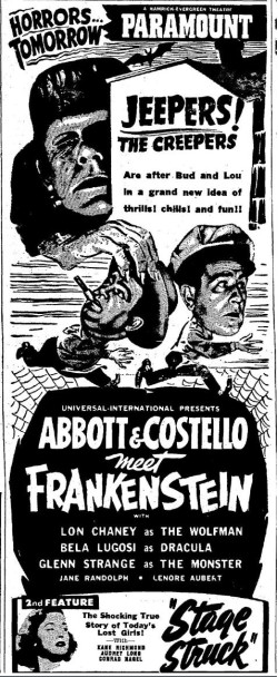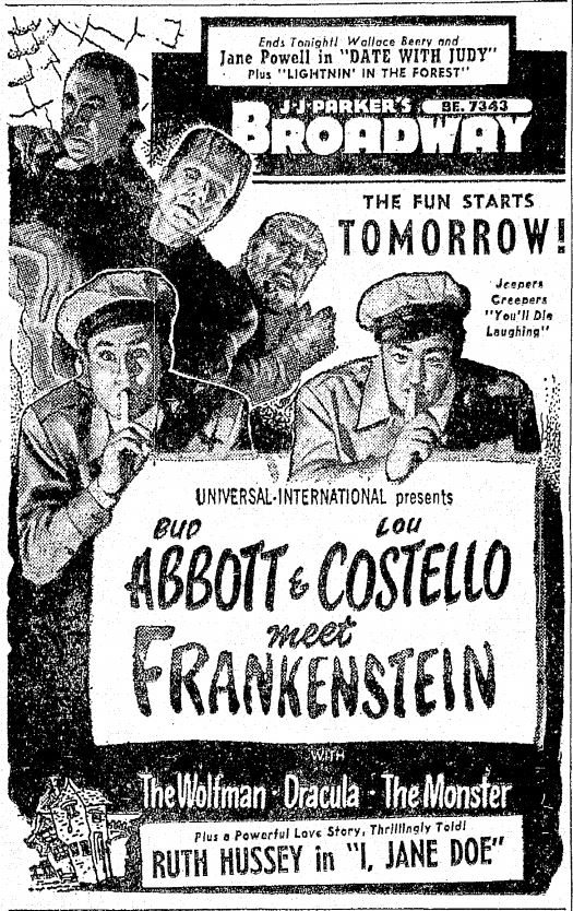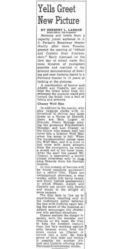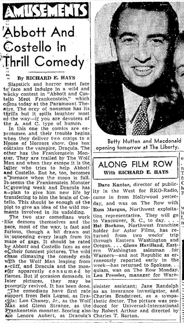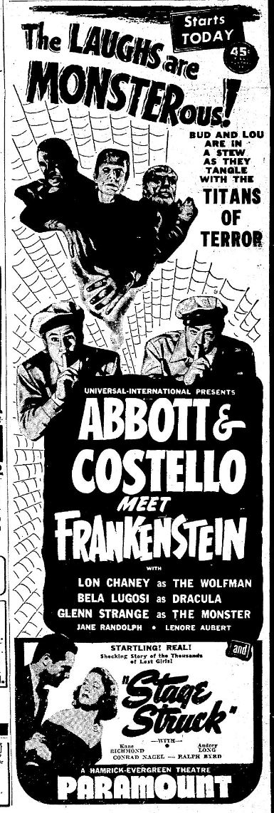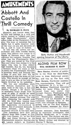 The following is a collection of print media from the initial runs of 1948's "Abbott and Costello Meet Frankenstein" in the Pacific Northwest.