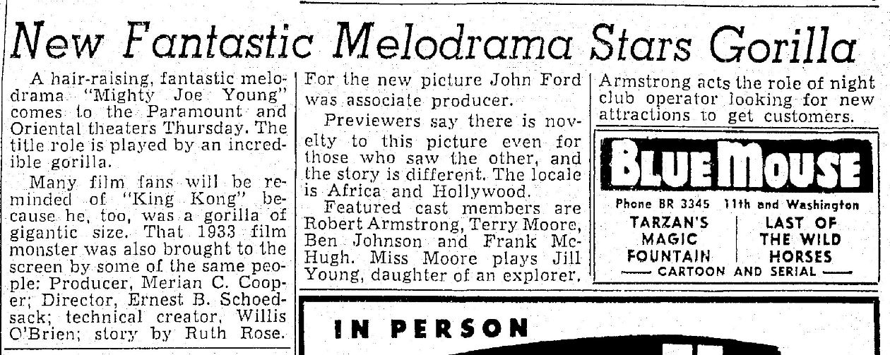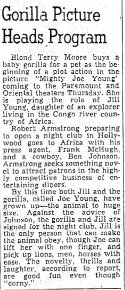 A young woman who has raised a giant gorilla from an infant brings him to Hollywood years later seeking her fortune.