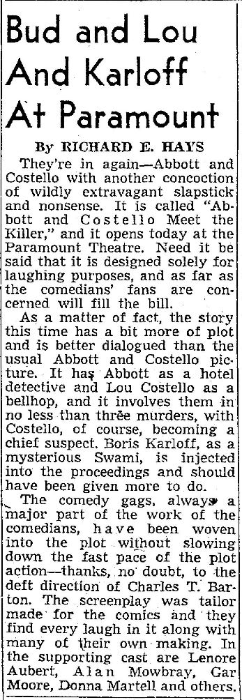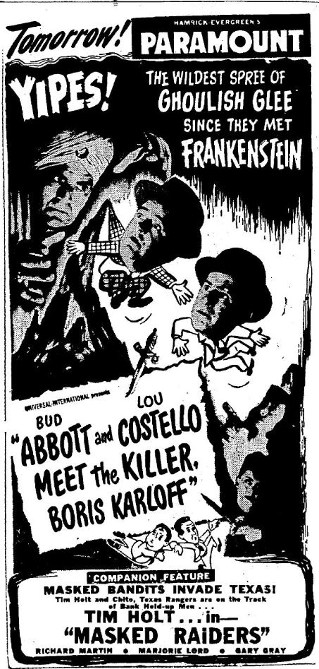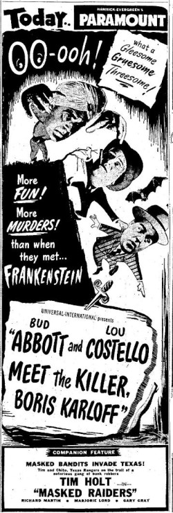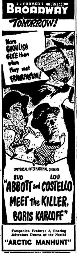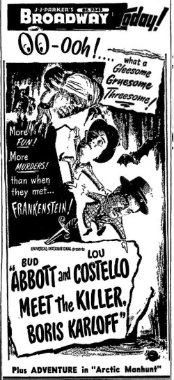 The following is a collection of print media from the initial runs of 1949's "Bud Abbott and Lou Costello Meet the Killer Boris Karloff" in the Pacific Northwest.