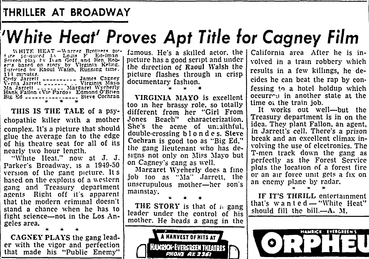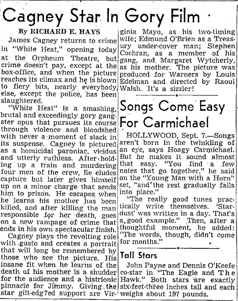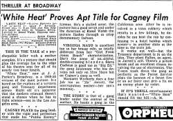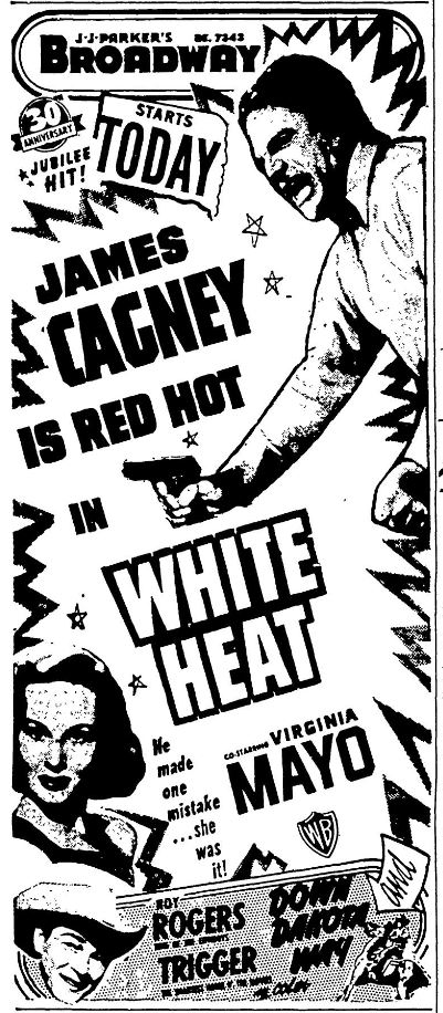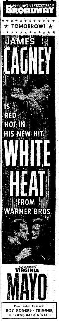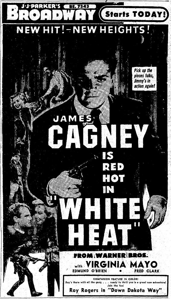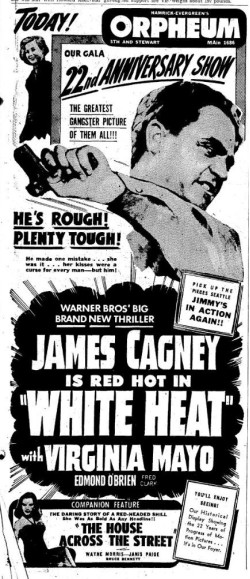 The following is a collection of media from the initial runs of 1949's "White Heat" in the Pacific Northwest. While this falls pretty far outside the realm of cult cinema, there are some classics that I just can't deny.