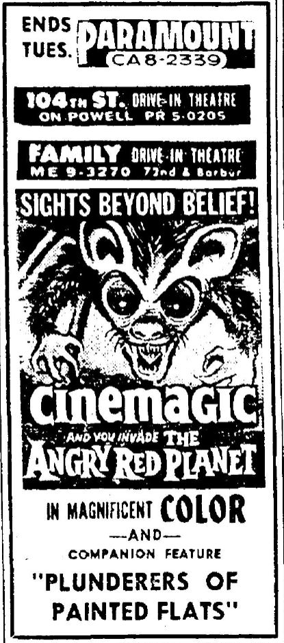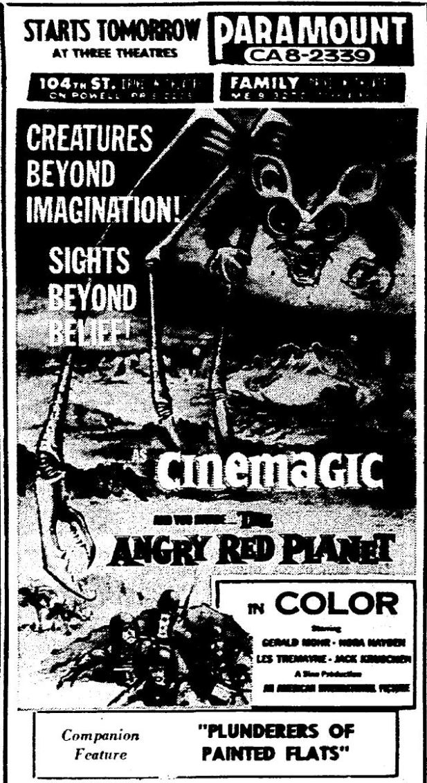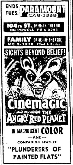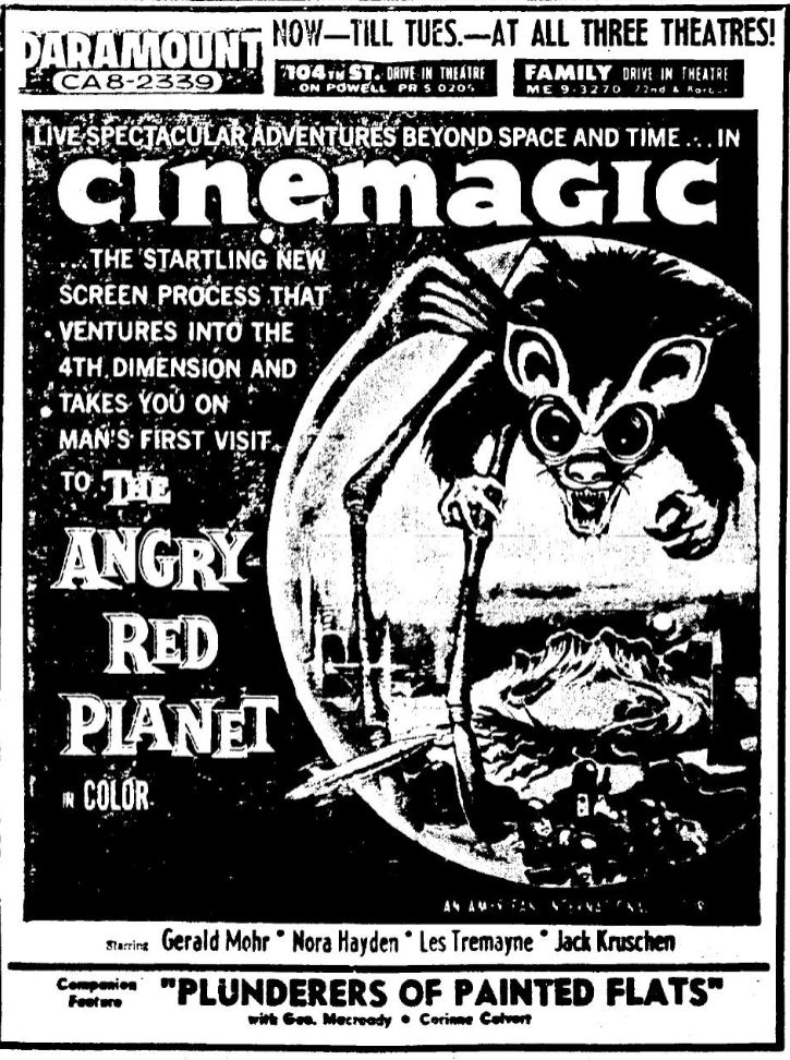 This is a collection of media from the initial releases of "The Angry Red Planet" (1959) in the Pacific Northwest.