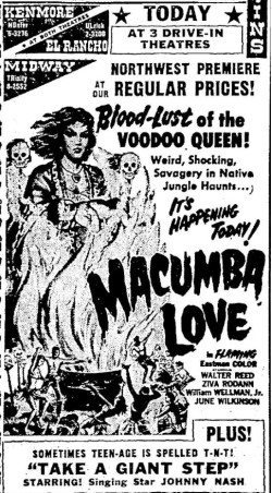 This is a collection of media from the initial releases of "Macumba Love" (1960) in the Pacific Northwest. "Take a Giant Step" (1959) was the co-hit in Seattle and Portland.