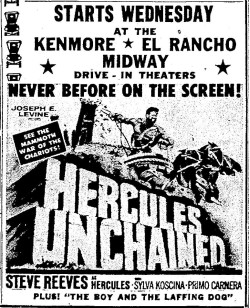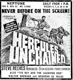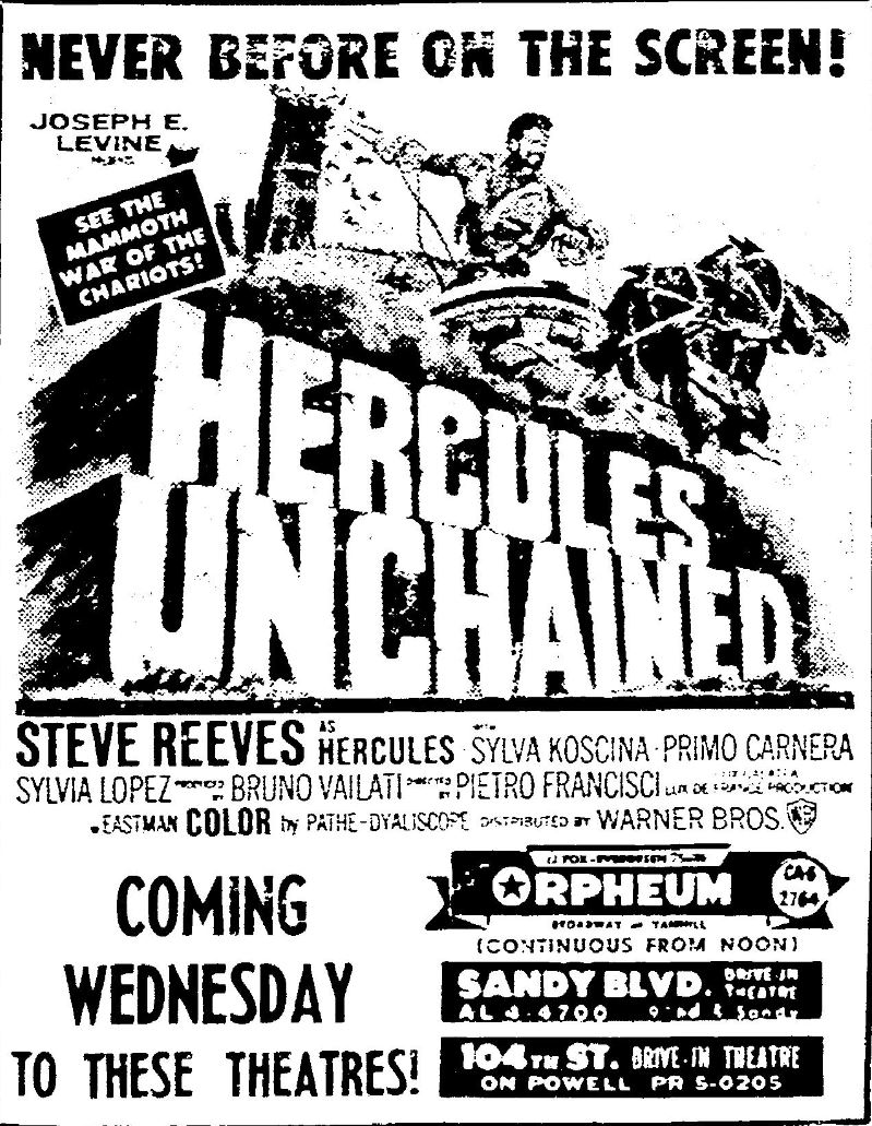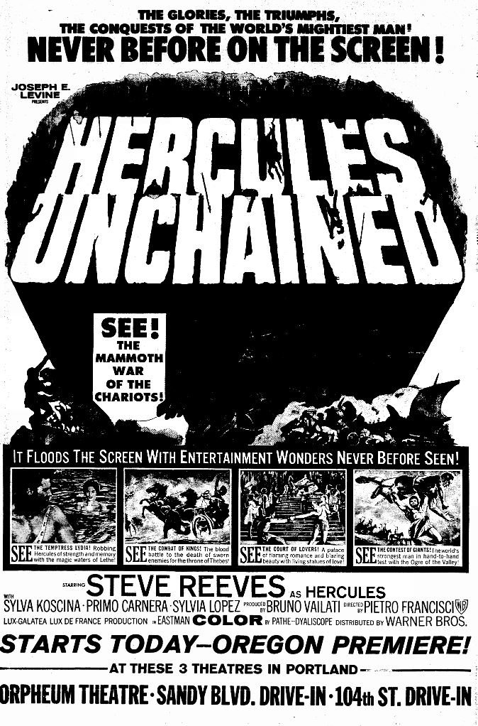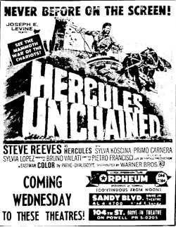 This is a collection of media from the initial releases of "Hercules Unchained" (1960) in the Pacific Northwest.