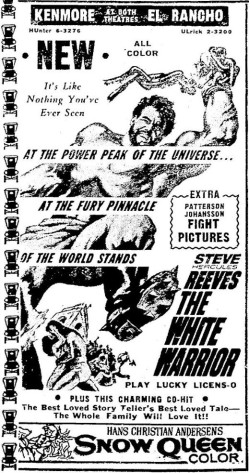 This is a collection of media from the initial releases of "The White Warrior" (1959) in the Pacific Northwest.