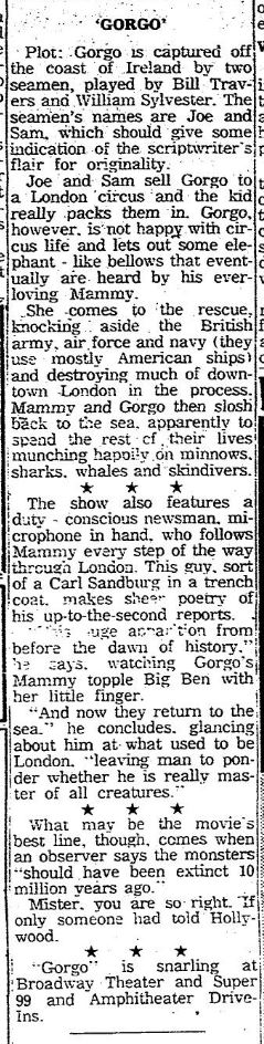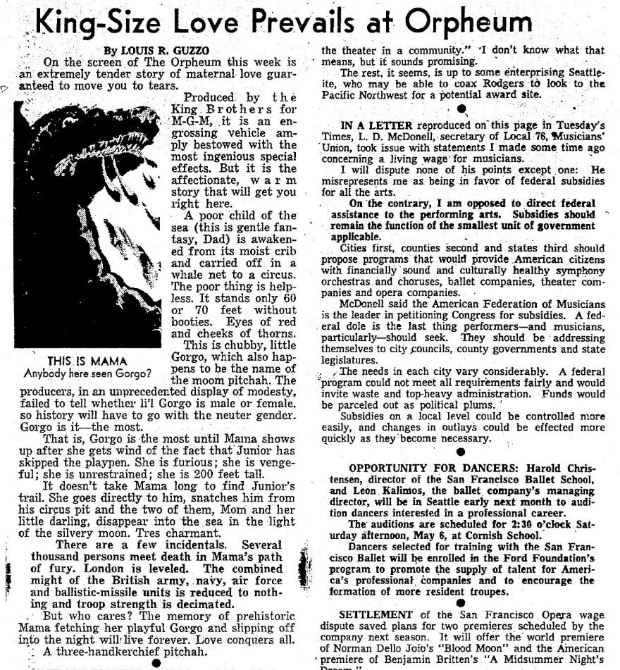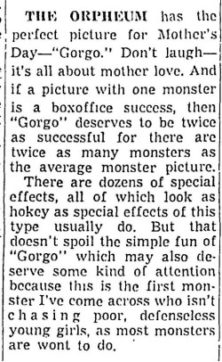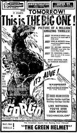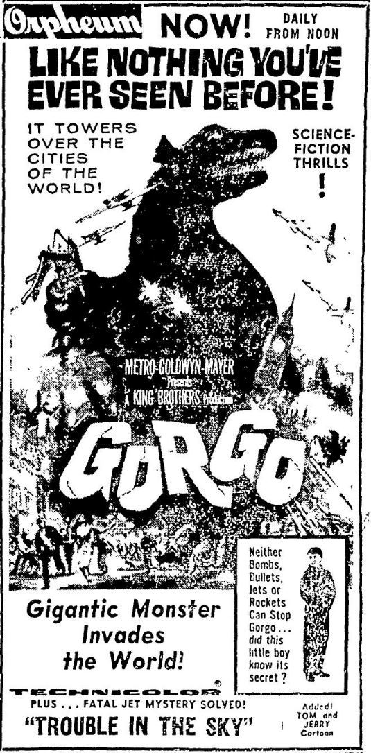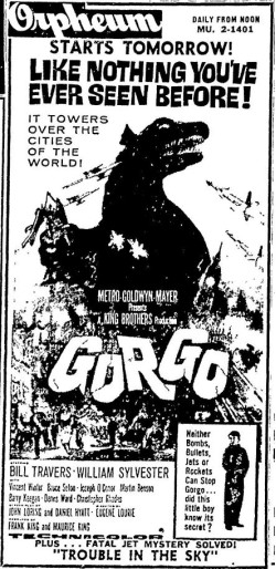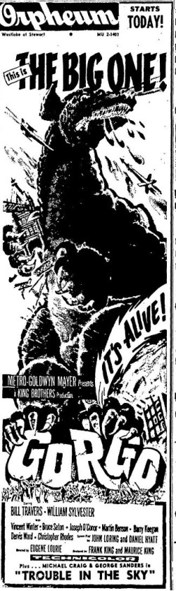 This is a collection of media from the initial releases of "Gorgo" (1961) in the Pacific Northwest.