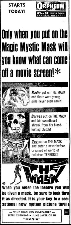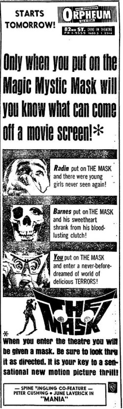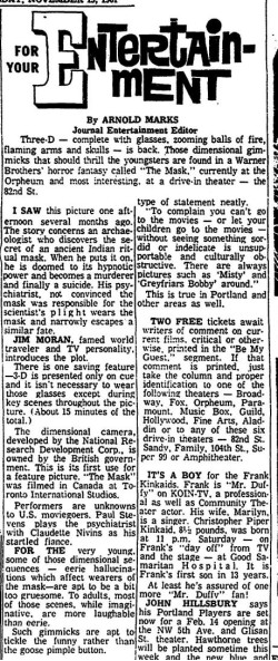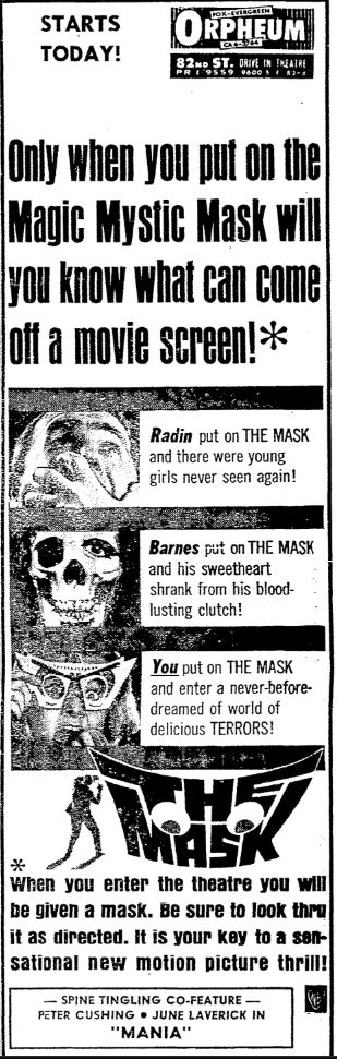 This is a collection of media from the initial releases of "The Mask" (1961) in the Pacific Northwest.