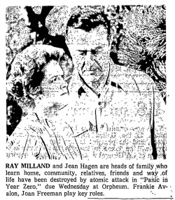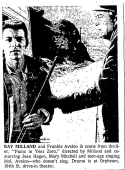 Stars: Ray Milland, Jean Hagen, Frankie Avalon