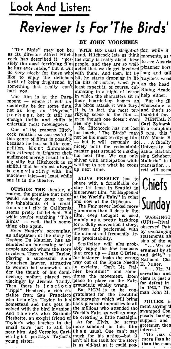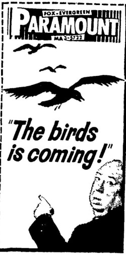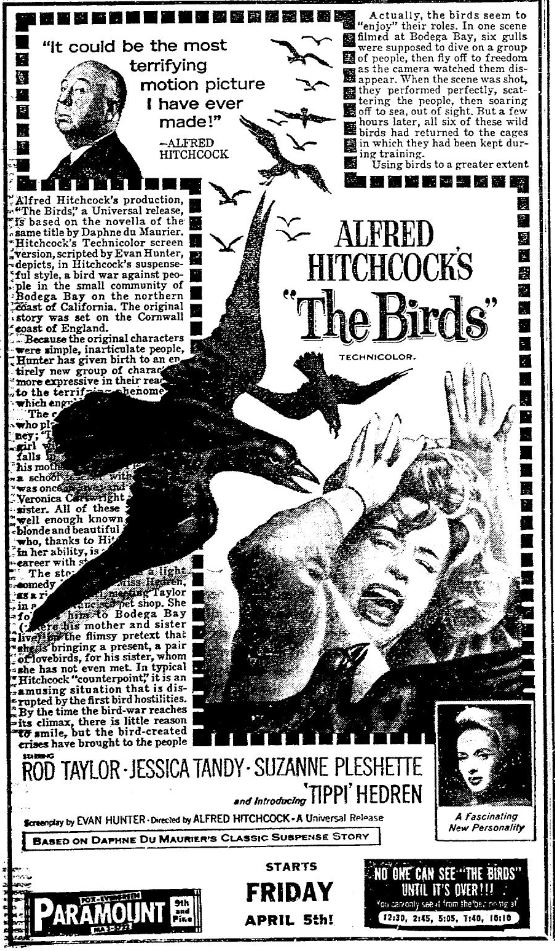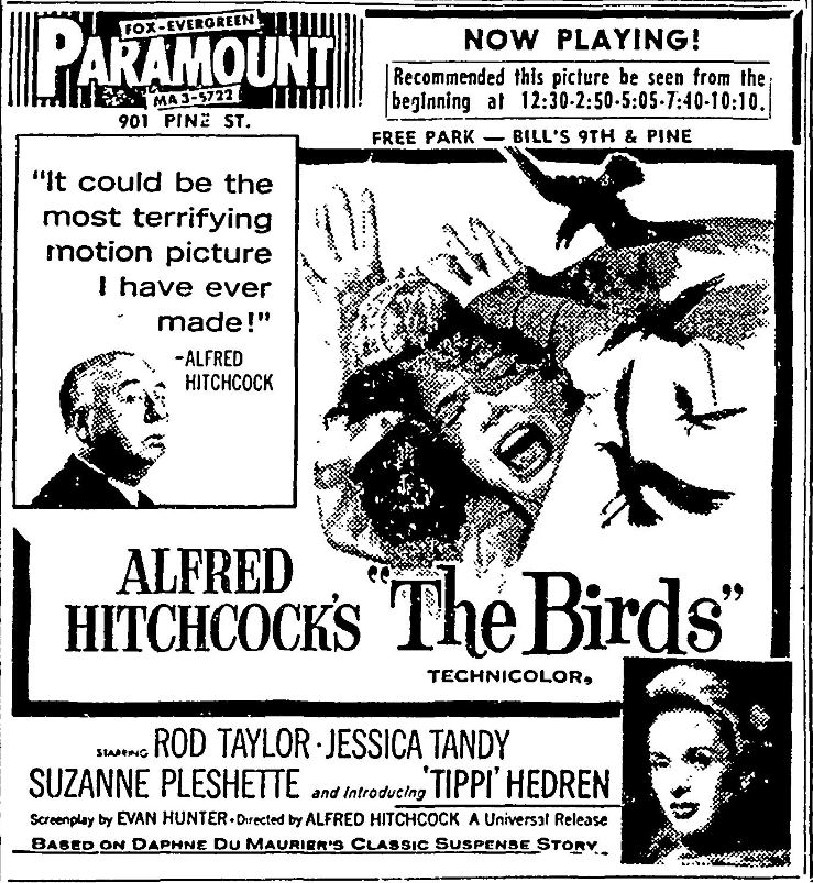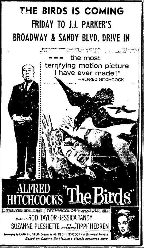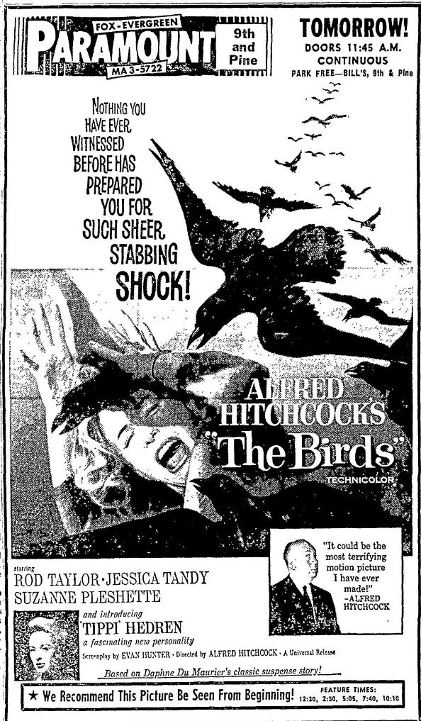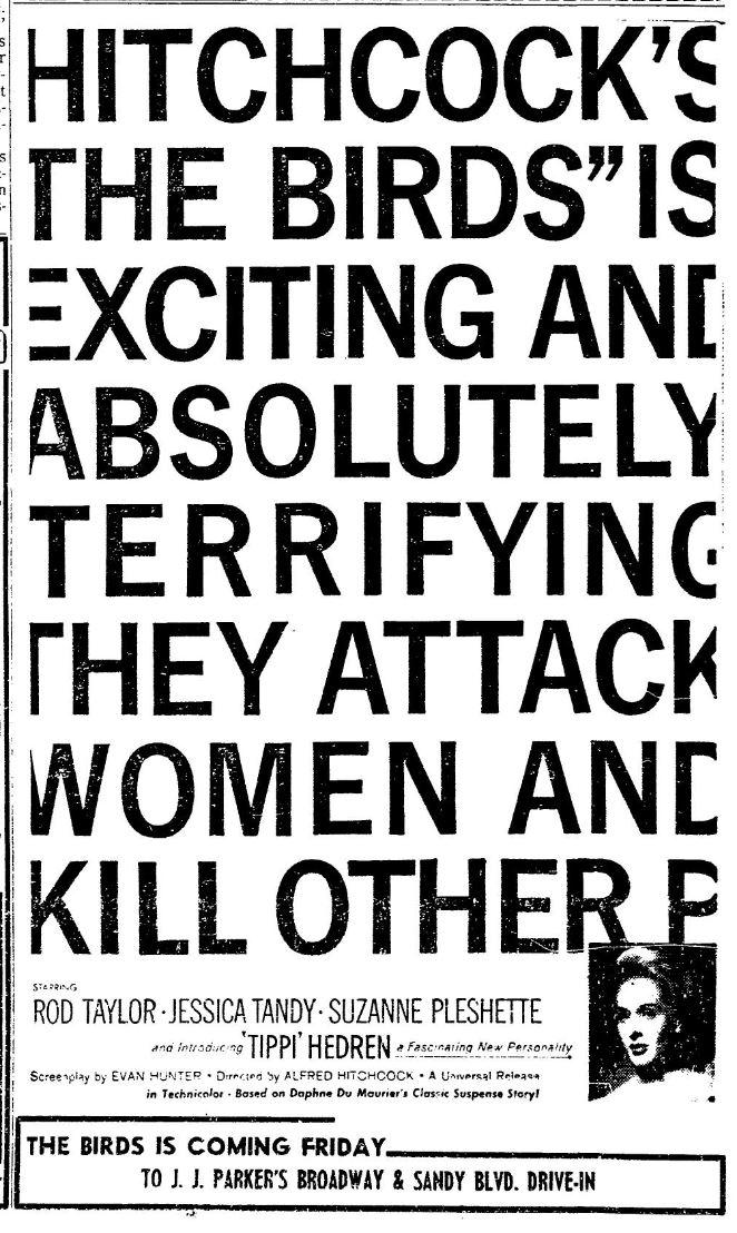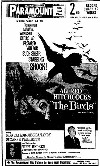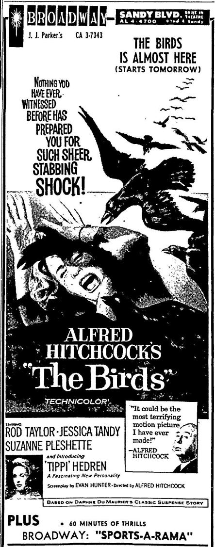 This is a collection of media from the initial releases of "The Birds" (1963) in the Pacific Northwest.